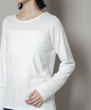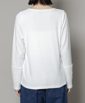 (カットソーのみ補足)ファー部分にはアイロンを当てないで下さい。摩擦により、素材表面が白っぽくなったり、毛羽立ちが発生したりします。着用中の強い摩擦や、バッグ・ベルト等との摩擦は、パイル(素材表面の毛羽)が抜けたり倒れたりする原因となりますので、充分注意してお取扱いください。粘着性のあるセロテープ等でホコリをとることは、毛抜けの原因となりますのでお避けください。濃色品は、着用中の摩擦で色落ち・色移りします。