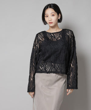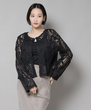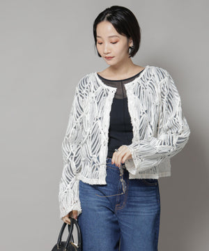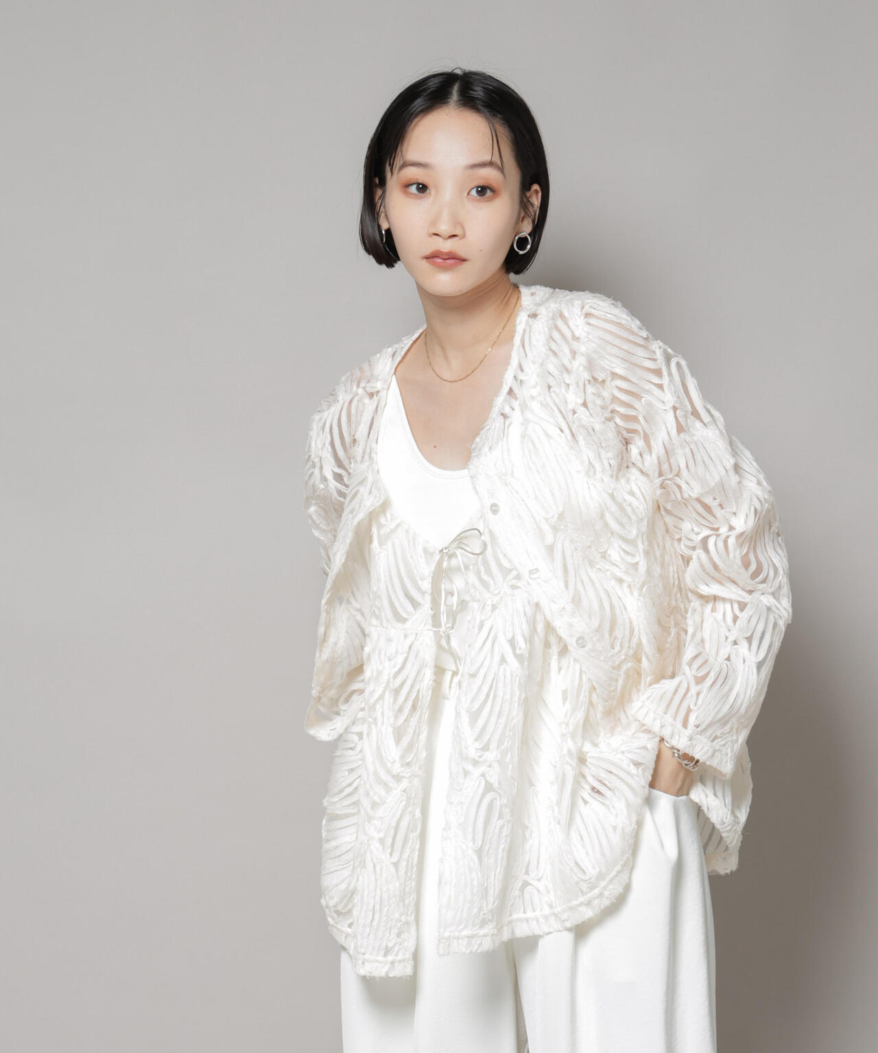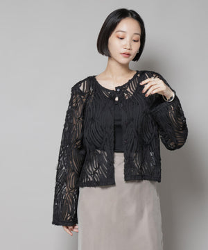 テープ刺繍チュール前後2wayカーディガン(セットアップ可)