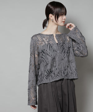 ・テープ刺繍チュールで仕立てた華やかな前後2wayカーディガン