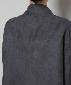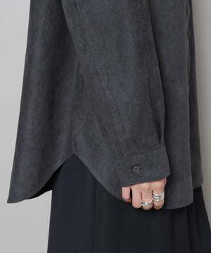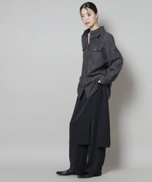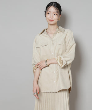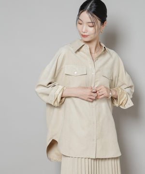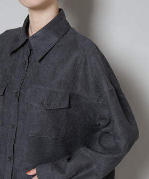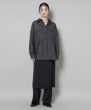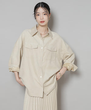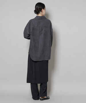 着るだけで今っぽさを纏える、フェイクスエード素材で仕立てたシャツ。フロントのボタンを閉めてトップスとしてはもちろん、ボタンを開けて軽羽織りとしても着回せるので、ロングシーズン重宝しそう!