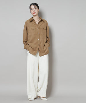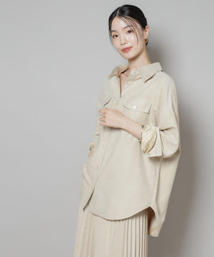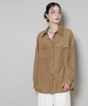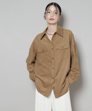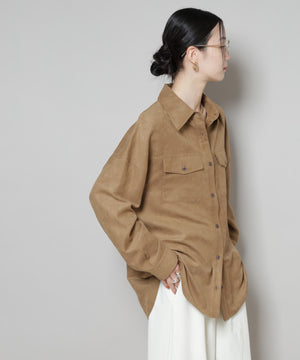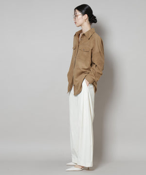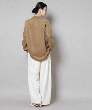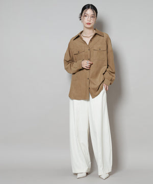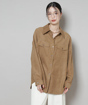 ・大人っぽいカジュアルコーデを楽しめるフェイクスエードシャツ