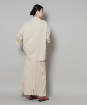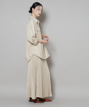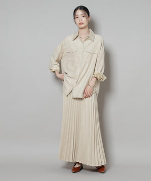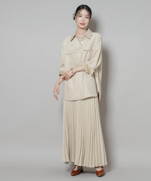 ・同素材のプリーツスカートと合わせてシャツワンピ風のスタイルも◎