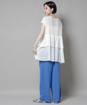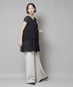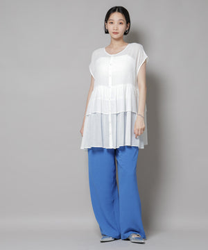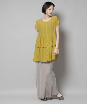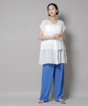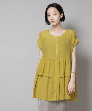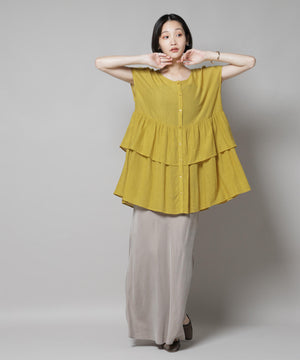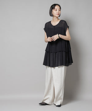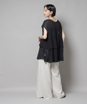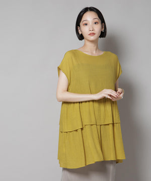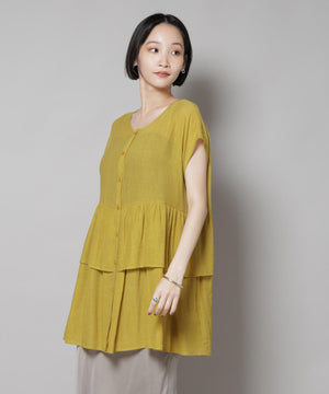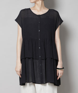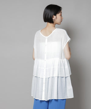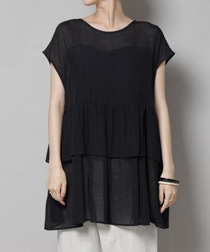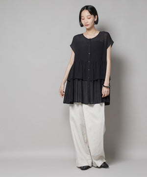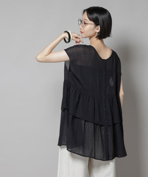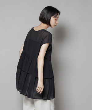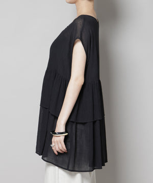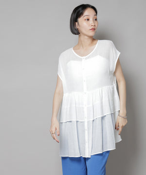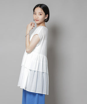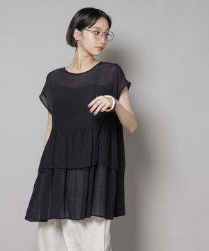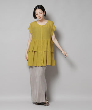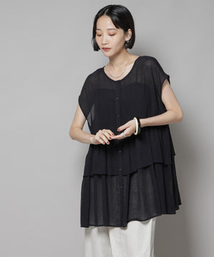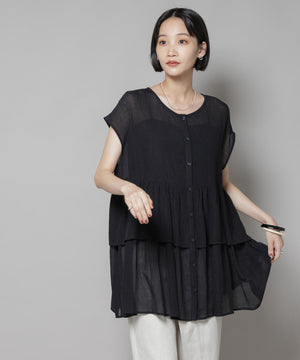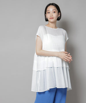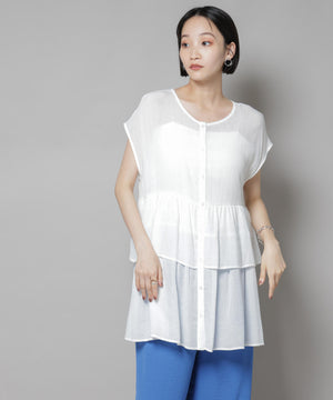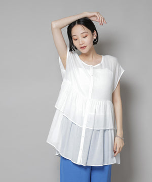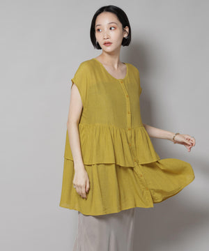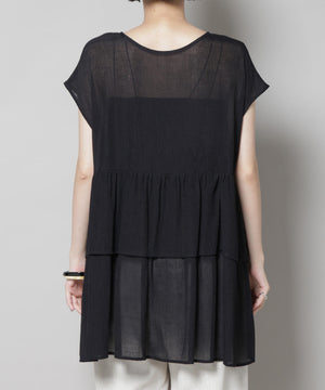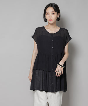 前後2wayシアー楊柳ノースリーブティアードブラウス