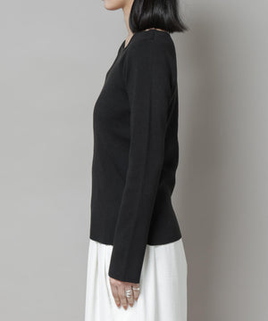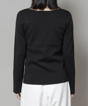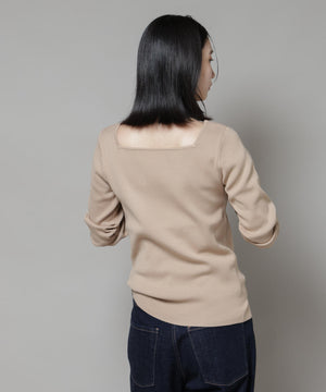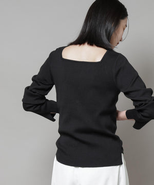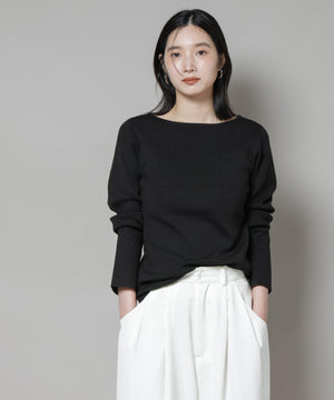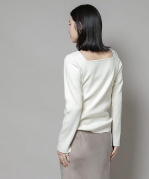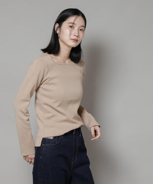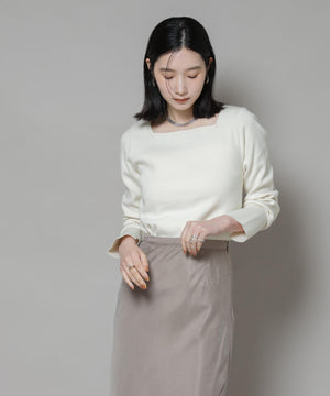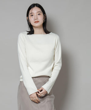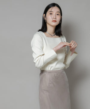 スクエアネックとボートネックのデザインを楽しめる、前後2wayのニットプルオーバー。合わせるボトムしだいでカジュアルにもキレイ目にも合わせられるので、クローゼットに備えておくと重宝しそう。
