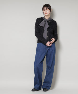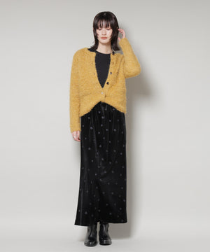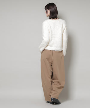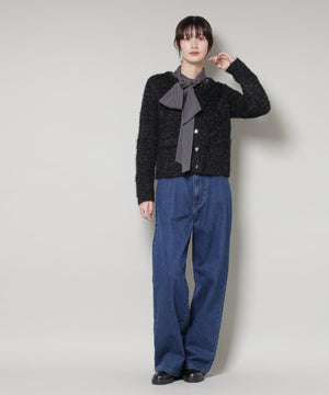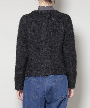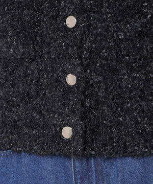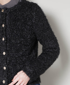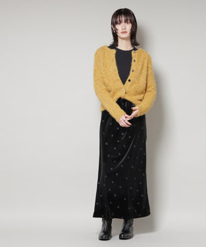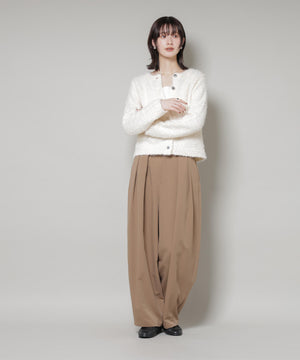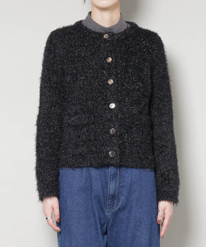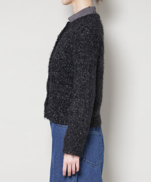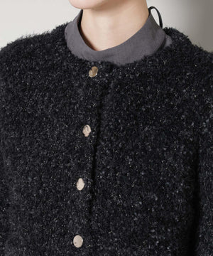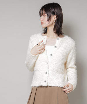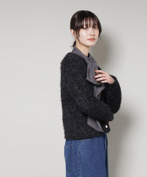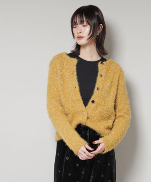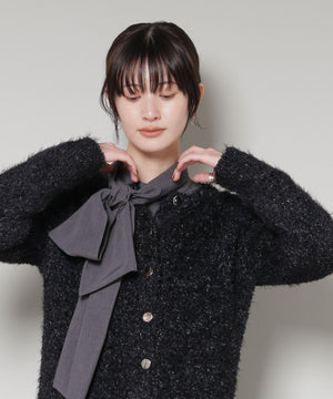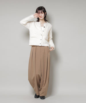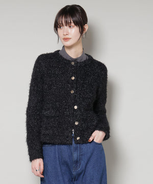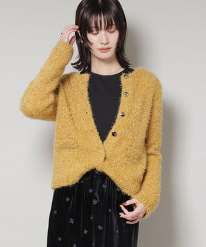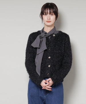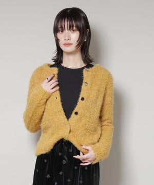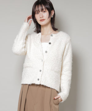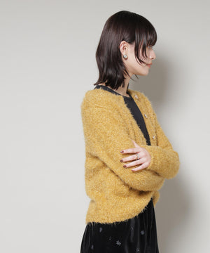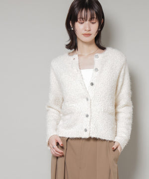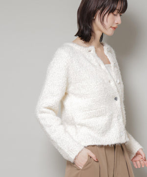 表情のある素材が印象的な、チュールシャギーのニットカーディガン。前を閉じてプルオーバーとしても、インナーを合わせてジャケット感覚でも着回せるので、通勤や学校行事、ちょっとしたお呼ばれシーンにも重宝しそう。