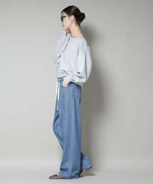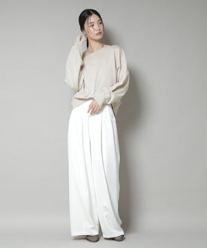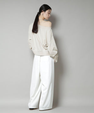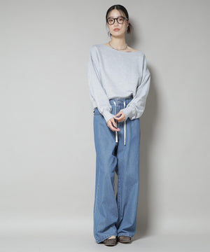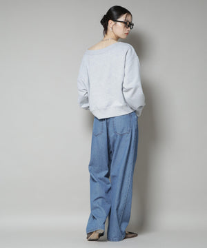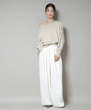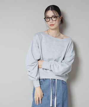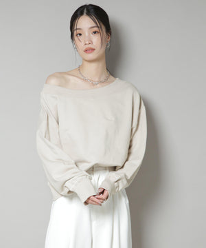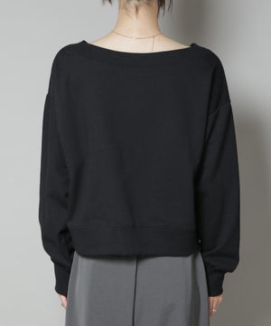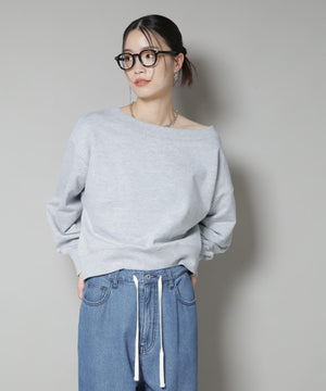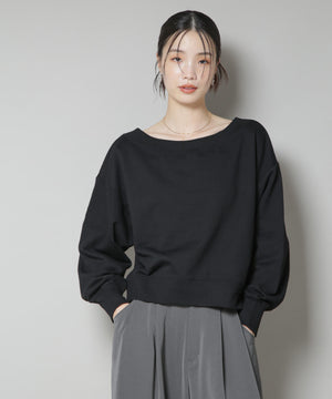 大人のカジュアルスタイルに重宝するスウェットトップス。デコルテが綺麗に見えるワイドなボートネックで、大人の女性にぴったりの上品な肌見せと抜け感が演出できます。