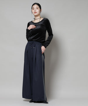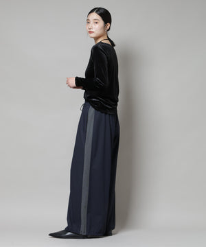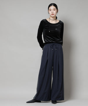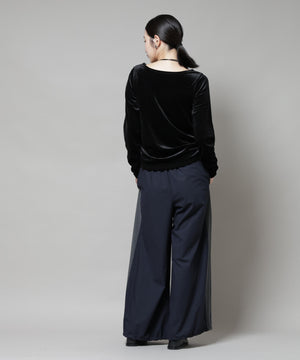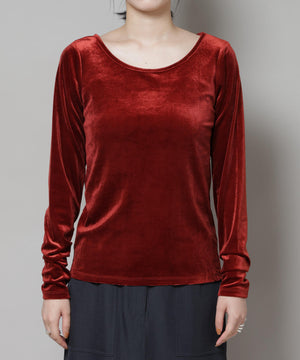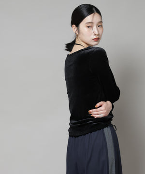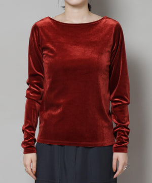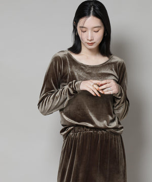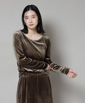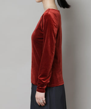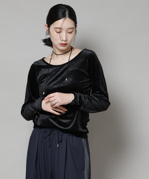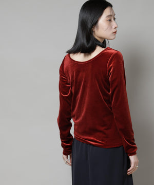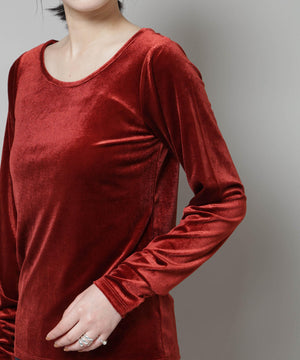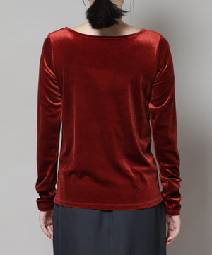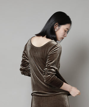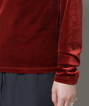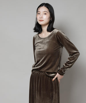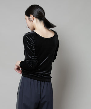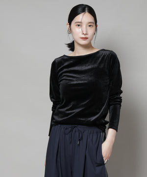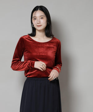 ・程よい光沢感がキレイ目な印象のベロアカットソー