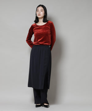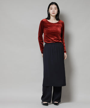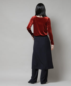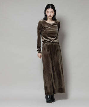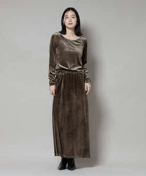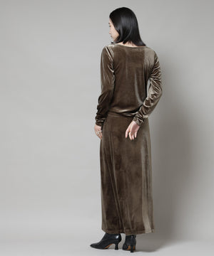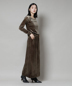 ・同素材のスカートと合わせて、ベロアドレス風の着こなしも◎