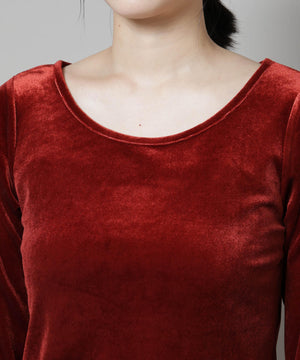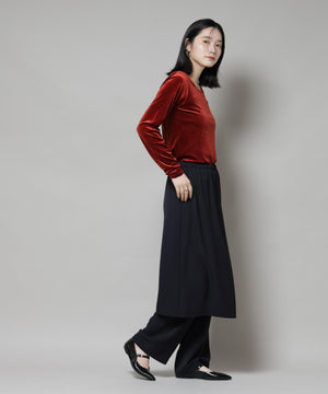 上品でエレガントな雰囲気を纏える、ベロア素材のカットソートップス。ニットの中に着て袖口から出してポイントにするコーディネートや、同素材のスカートと合わせてドレス風の着こなしも素敵です。