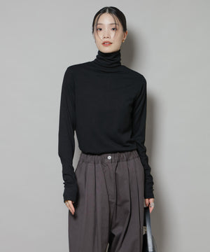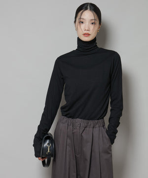吸湿発熱の機能がついた着心地の良いタートルネックカットソー。コンパクトなサイズ感ながら身体のラインにフィットしすぎないシルエットでインナーとしても活躍する一着。万能に使えるアイテムだからこそ、同素材展開のクルーネックと型違いで揃えておくと重宝しそう!