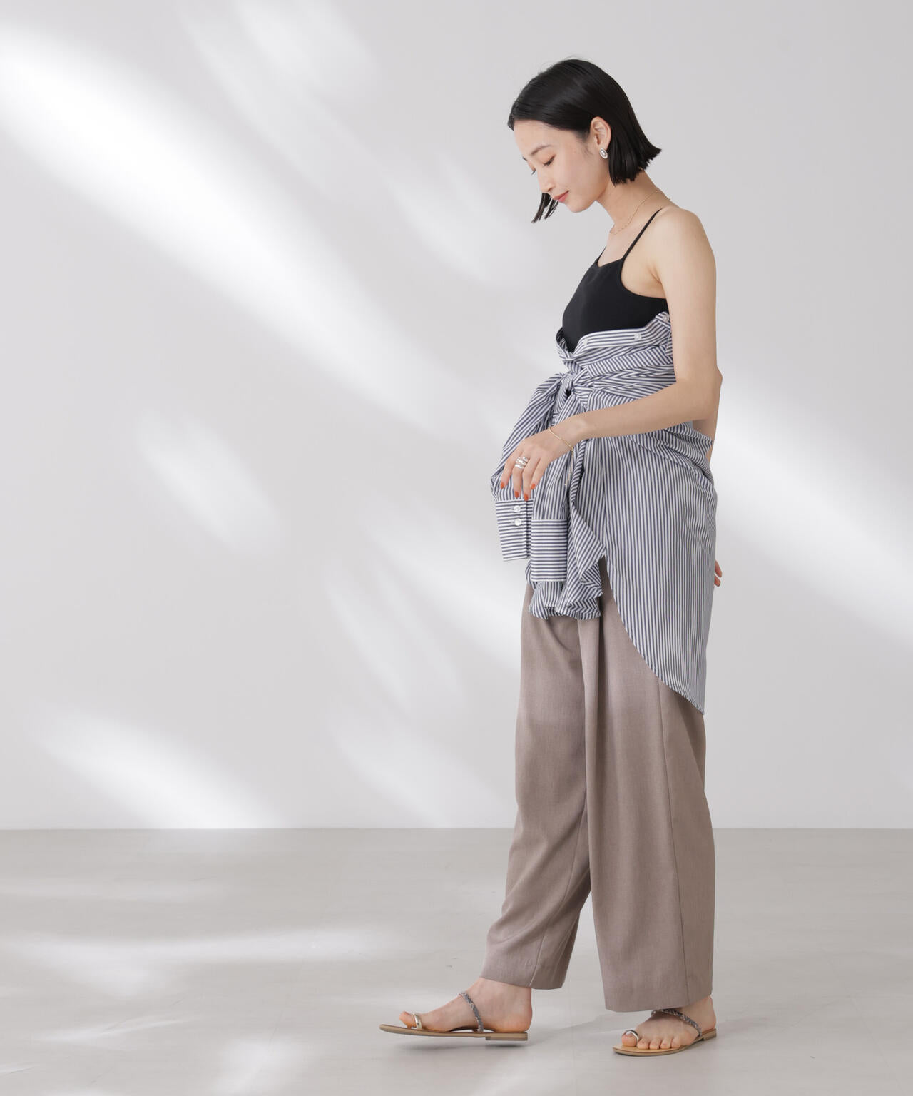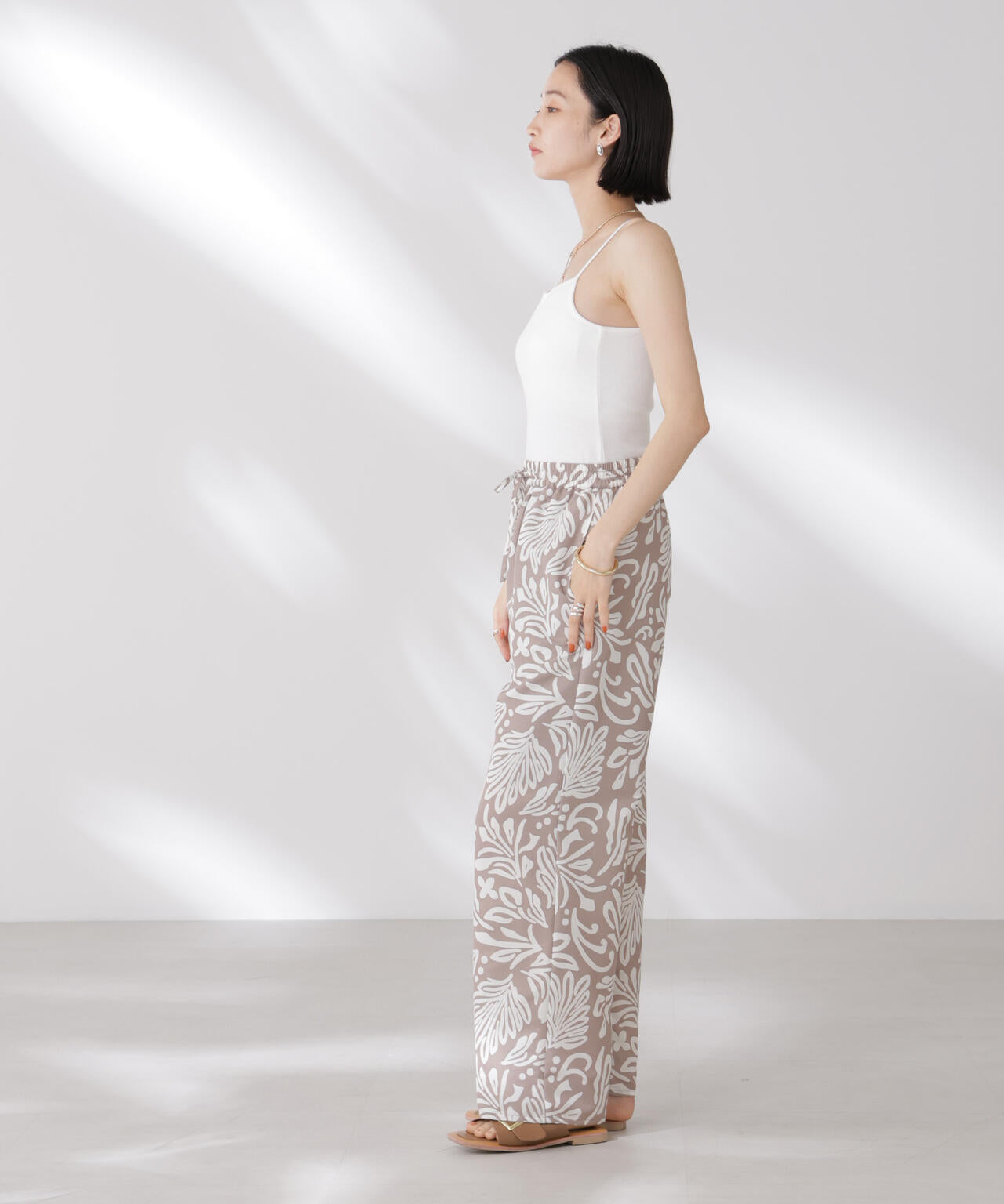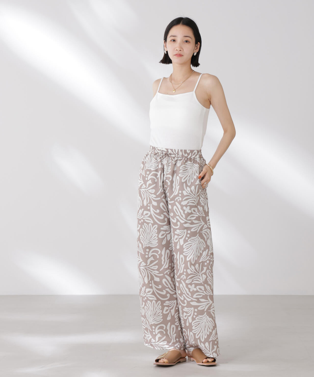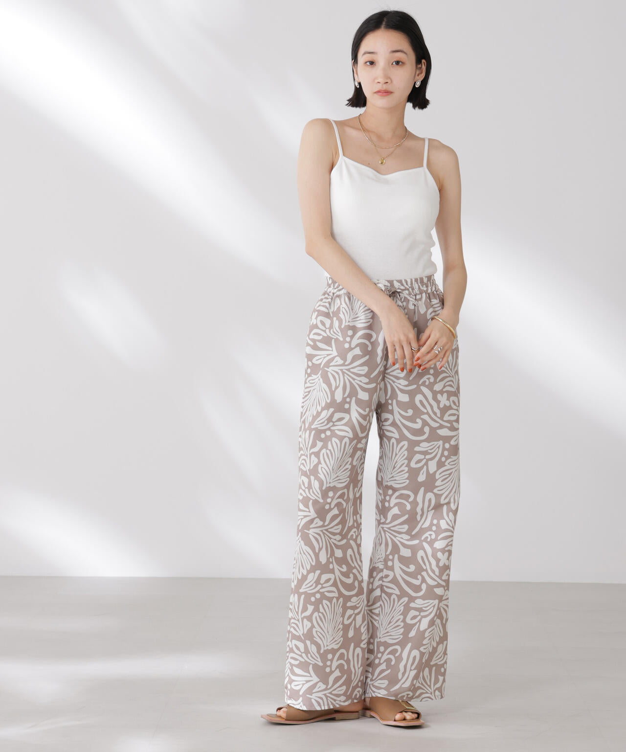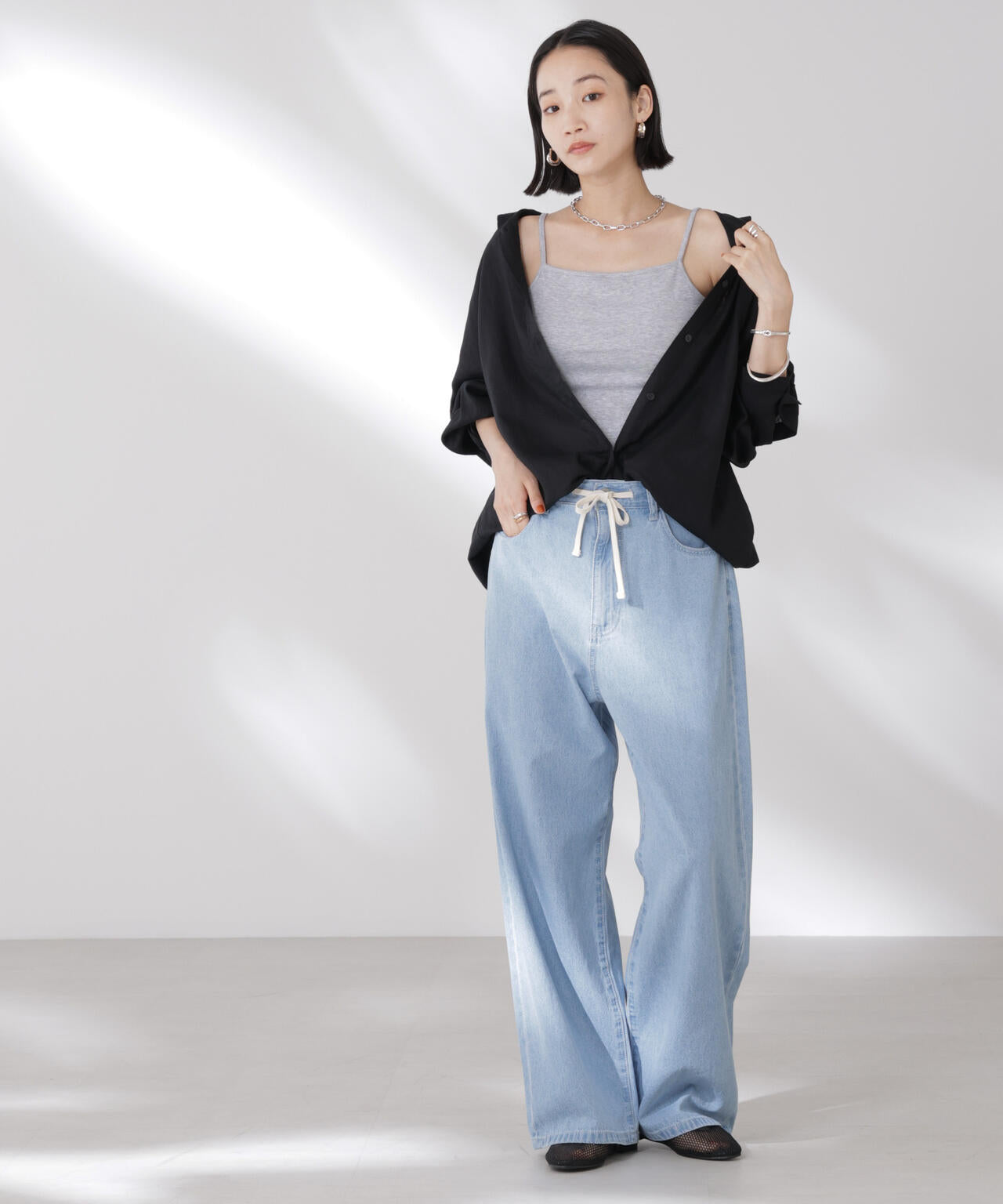 シンプルでどんなコーディネートにも取り入れやすい多機能性素材のカップ付きキャミソール。シャツやジャケット、ニットなどのインナーとしてオールシーズン着回せるので、ワードローブに備えておくと重宝します。