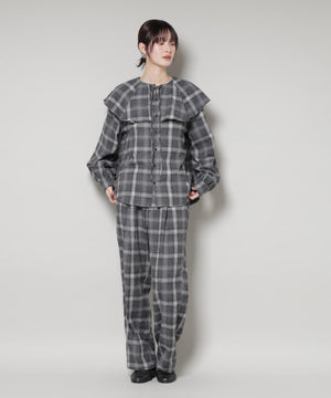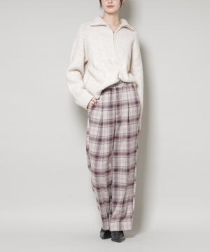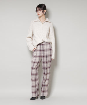 トレンドのオンブレチェック柄がスタイリングのポイントになるロングパンツ。起毛感ある素材が秋冬らしい印象の一着。同素材のブラウスとのセットアップスタイルもおすすめです。