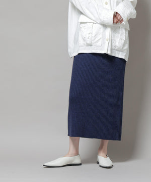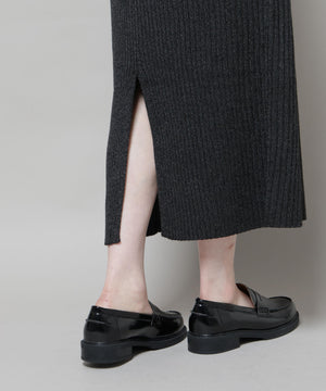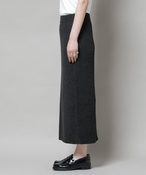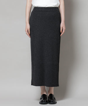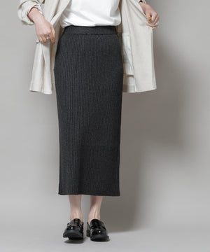 メランジリブがポイントの大人なシルエットを演出してくれるリブニットナロースカート。合わせるアイテムによってカジュアルダウンもできる万能なスカートです!