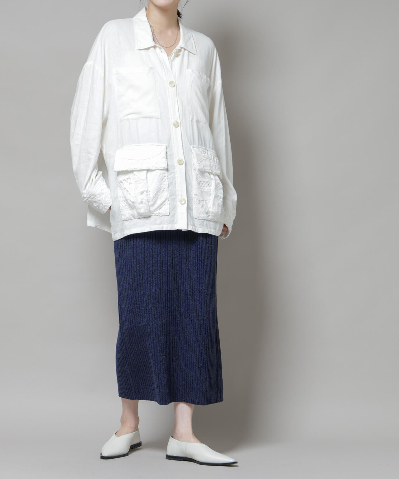 ・大人なシルエットを演出してくれるリブニットナロースカート