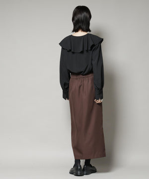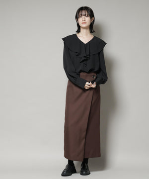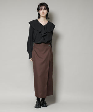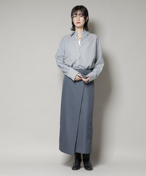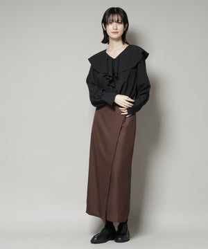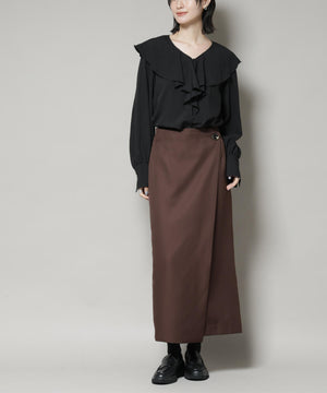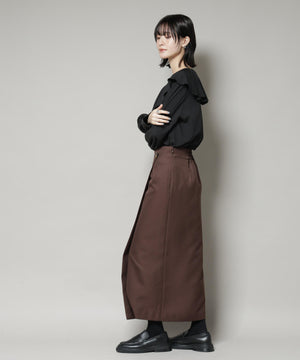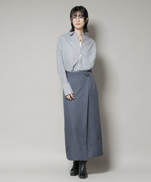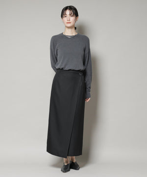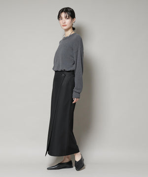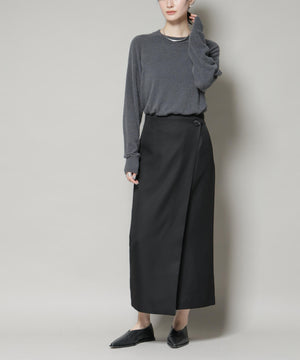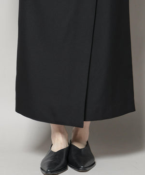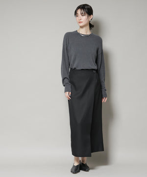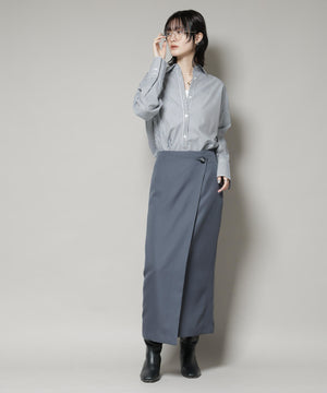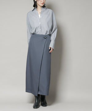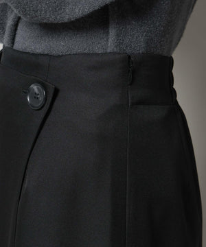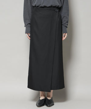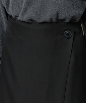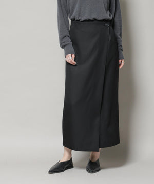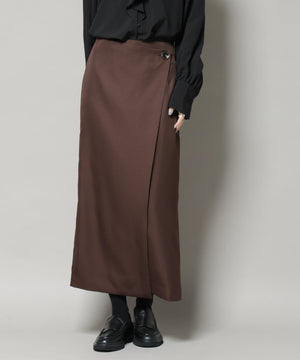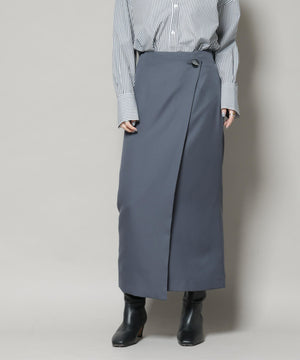 着るだけで着映えするラップ風デザインのスカート。柔らかくきれいめな表面感のポリエステル素材はシーズンレスで着まわせ、撥水加工が施されれいるため雨の日も安心して着用できる一着です。