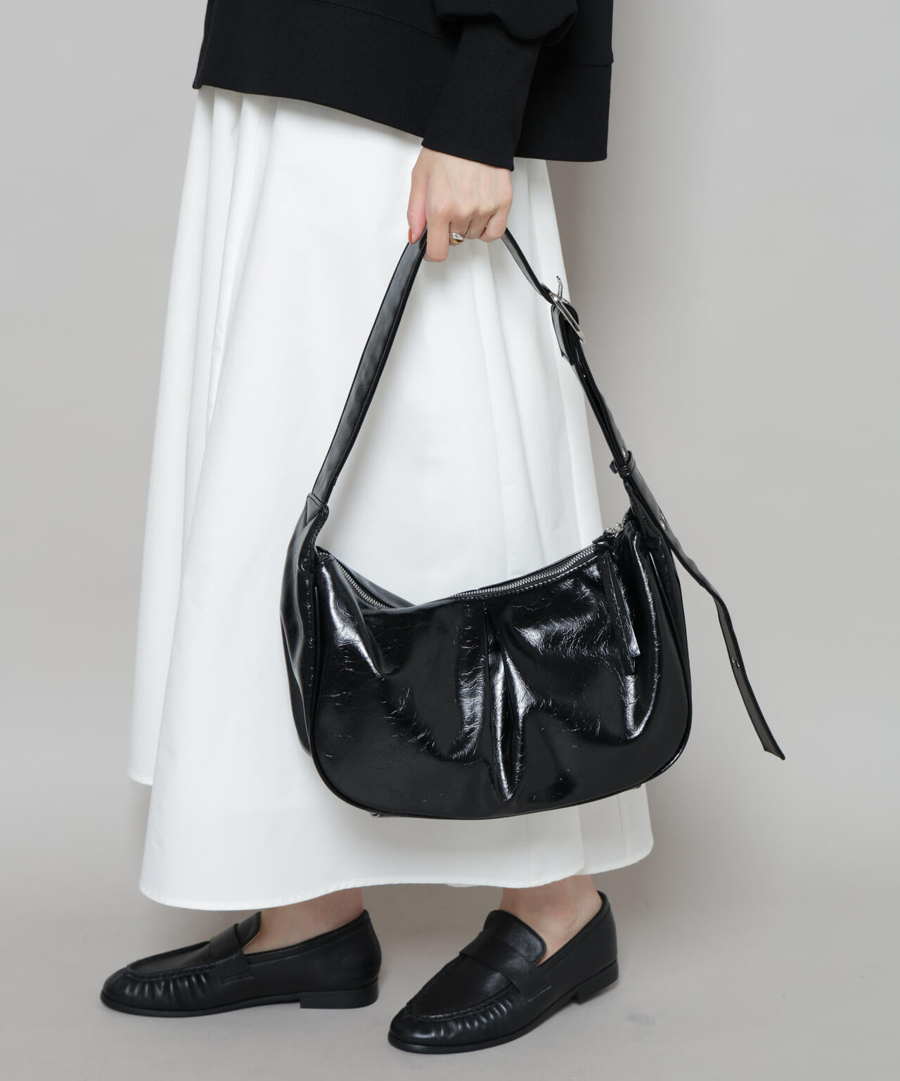 合わせるだけでトレンド感を纏えるラウンドショルダーバッグ。見た目以上の収納力で使い勝手が良く、デイリーからお呼ばれシーンまで幅広く頼れそうなアイテムです。
