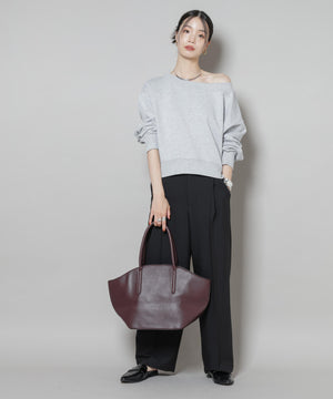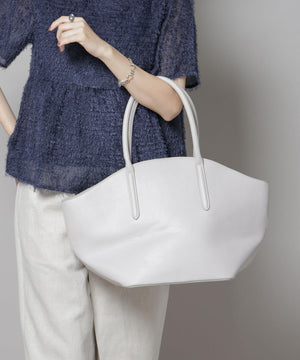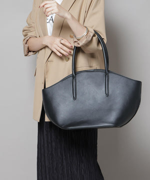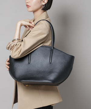 ラウンド型のデザインが、こなれ感あるスタイリングに導くトートバッグ。大きすぎず程良く持ちやすいサイズ感なので、デイリー使いからビジネスシーンまで、幅広く頼れそう。