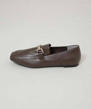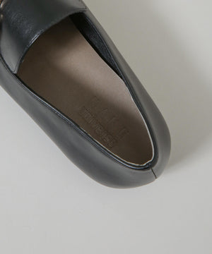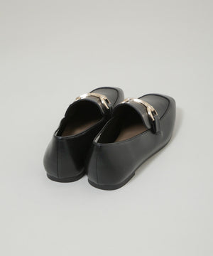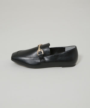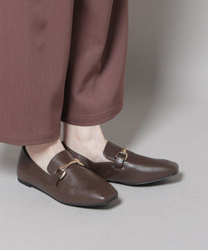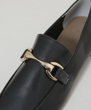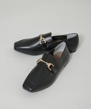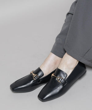 マニッシュさを抑えた、華奢なフォルムのバックル付きローファー。スクエアトゥと丸みのある切替デザインの組み合わせで、女性らしさが引き立つデザインに。きれいめのボトムスと相性良く、通勤スタイルにおすすめの一足です。