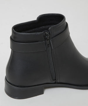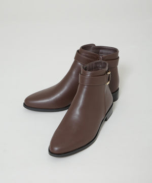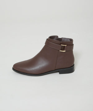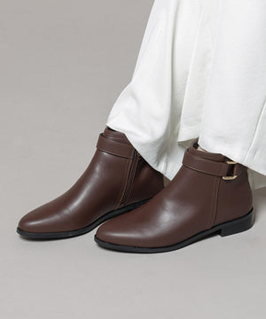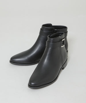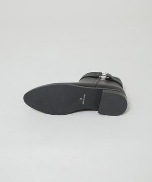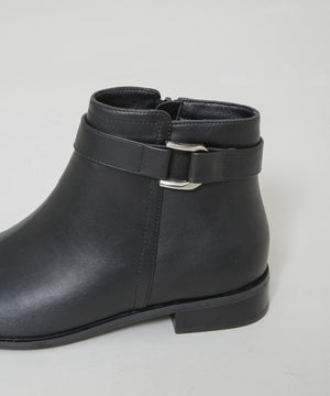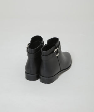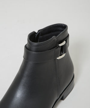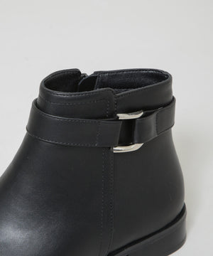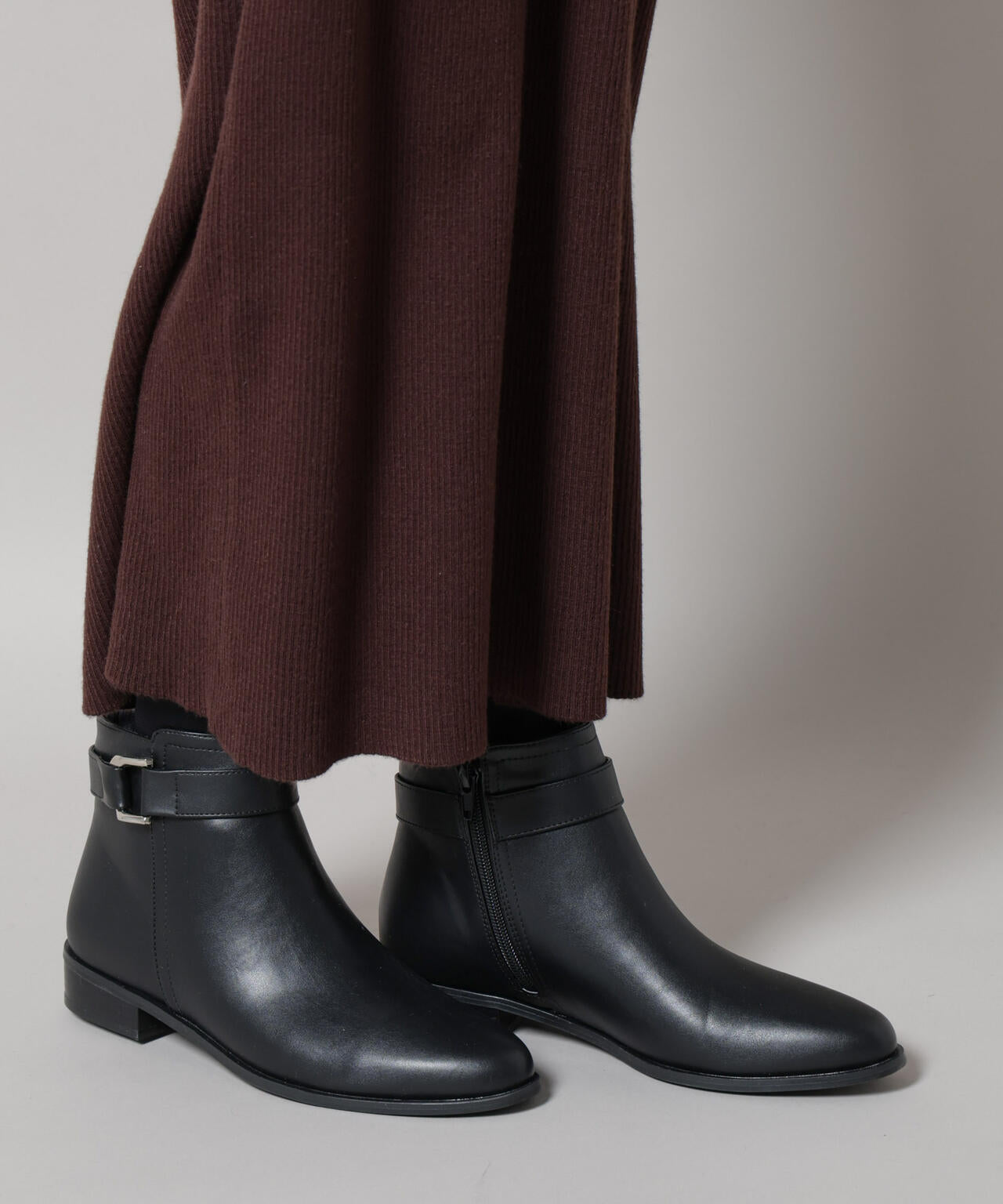 バックルベルトモチーフのさりげないアクセントが効いたショートブーツ。癖のないベーシックなデザインなので、ボトムスを選ばずスタイリングしやすい一足です。