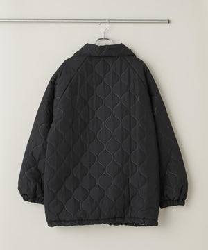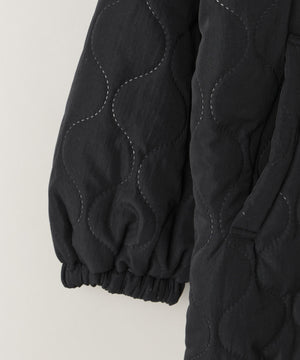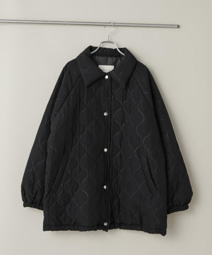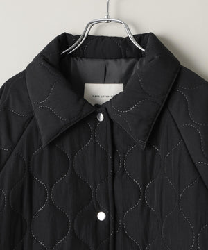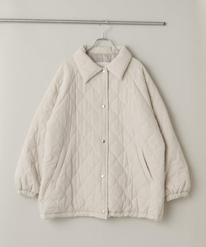 ひょうたん柄の圧着キルトが目を惹く、表情豊かなラグランミドルコート。ボリューム感のある丸みのあるシルエットが、カジュアルさを抑え、フェミニンで女性らしい雰囲気に。裾のドローコードでシルエット調整も可能で、その日の気分やスタイリングに合わせてアレンジが楽しめます。