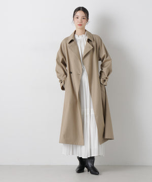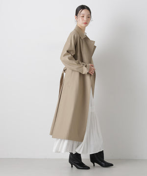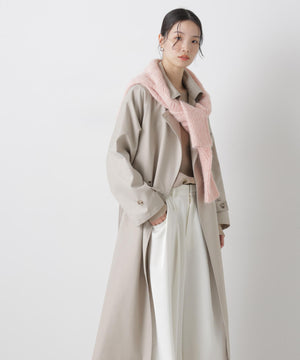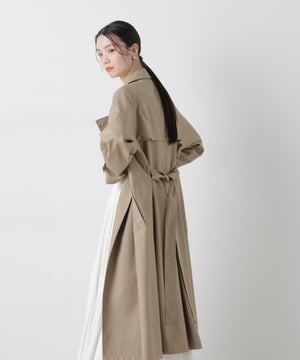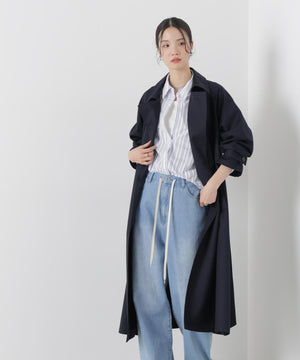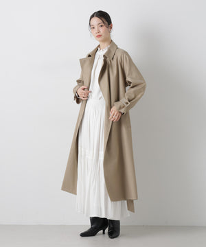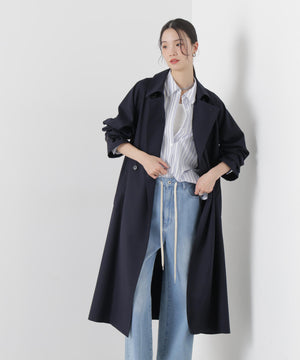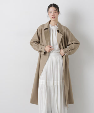 撥水&花粉ガードシリーズのきちんと感とラフさを兼ね揃えた、軽い着心地のトレンチコート。撥水加工を施した高機能性を備えており、天候を気にせずに着用できる頼れる1枚。ガウンのような感覚でサッと羽織れるので、ワードローブに加えていただければ重宝すること間違いなし!