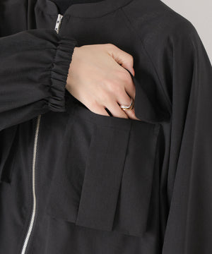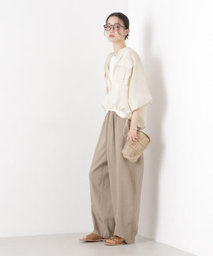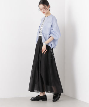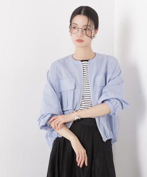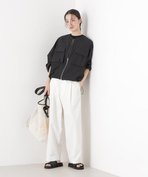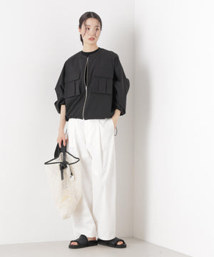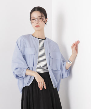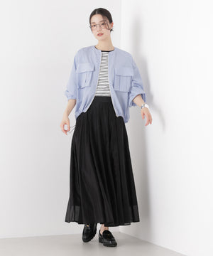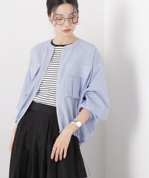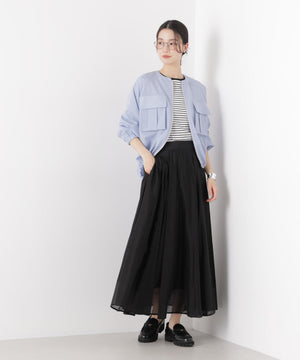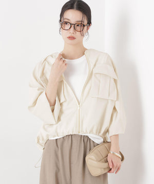 春から初夏にかけてのスタイリングを羽織るだけでアップデートしてくれるシアーブルゾン。やさしい光沢感が上品な印象を演出し、程よい透け感で軽やかさと着やすさを両立。軽やかな素材感で春先の防寒対策としてはもちろん、シアートップス感覚でも着用いただける一枚です。