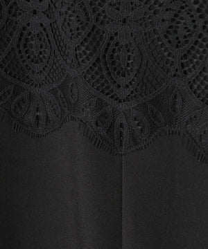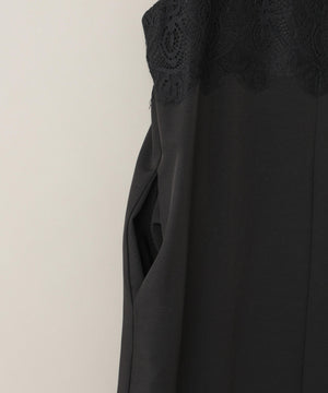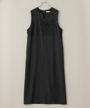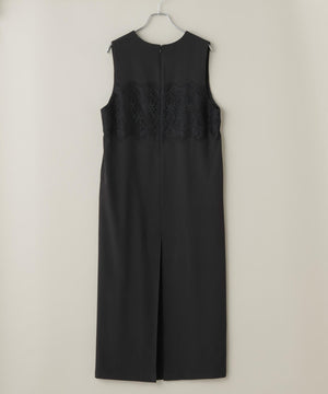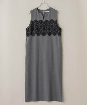 ・胸元を上品なレースで切り替えたシンプルなノースリーブワンピース