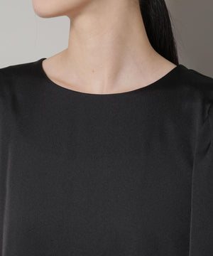 ・程よく上品な光沢感のサテン素材と、ハリのある素材の異素材コンビ