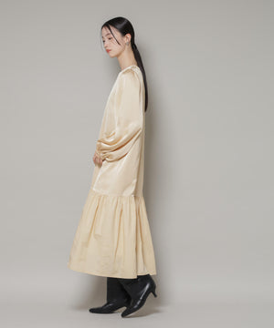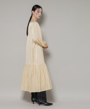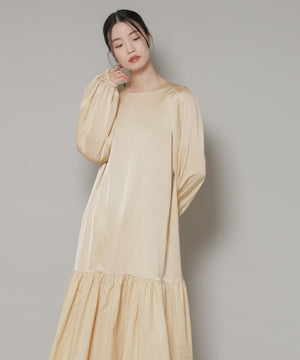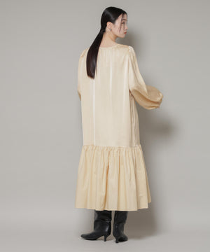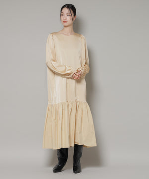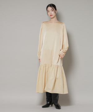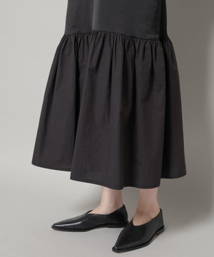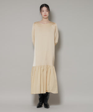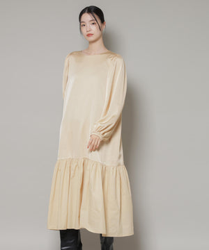 ・着るだけで華やかな印象に仕上げてくれる、たっぷりギャザーの入った異素材ヘム