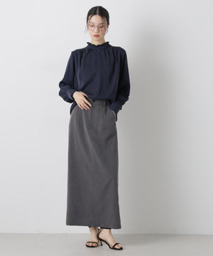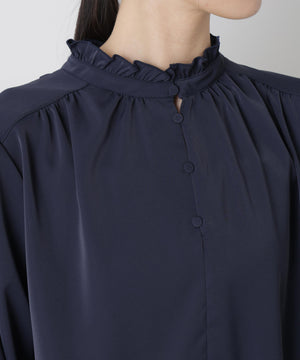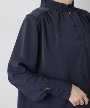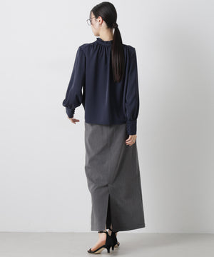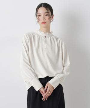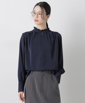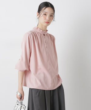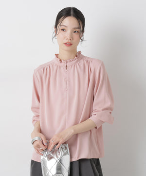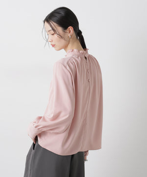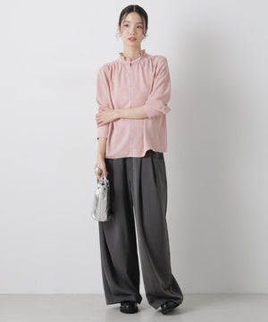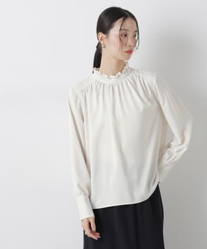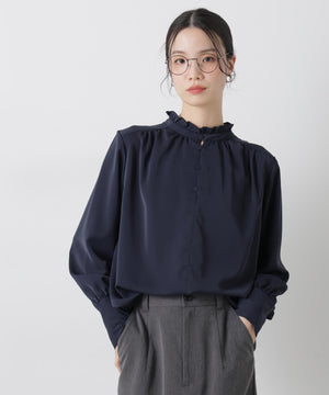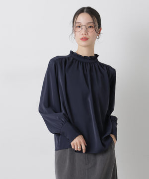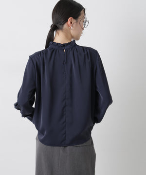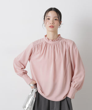 前後2wayスタンドカラーギャザーブラウス