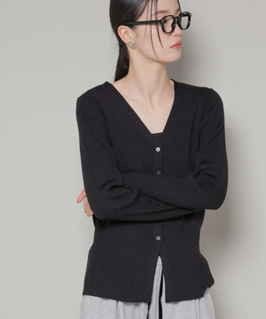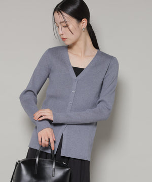 程良くタイトなサイズ感と裾のスリットが抜け感溢れるリブニットカーディガン。ストレッチの効いた着心地の良い素材感とトレンド感のあるデザインで、幅広く着回せる万能アイテムです!