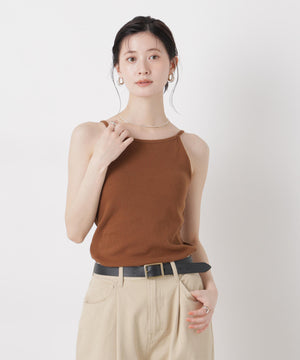 ヘルシーな肌見せが叶う、アメリカンスリーブデザインのキャミソールトップス。華奢なストラップとカップ付きのすっきりとしたシルエットで、一枚でさらっと着やすいデザインと機能性が魅力。シアー感のあるシャツやジャケットのインナーとしてもポイントになってくれるので、色違いで揃えておいても重宝しそう!