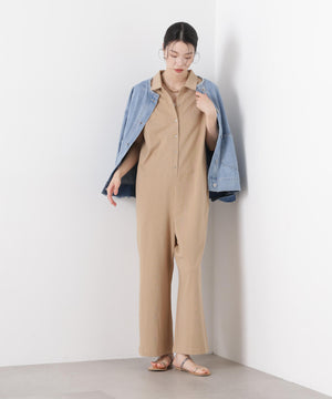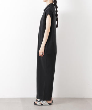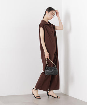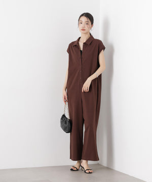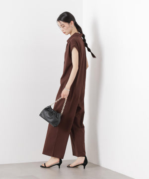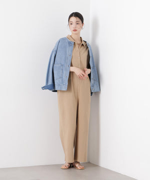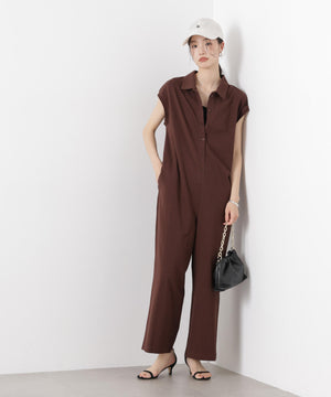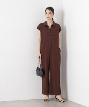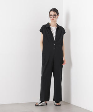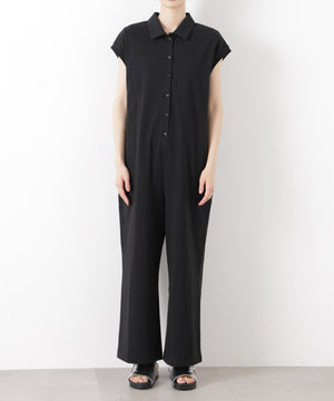 ポロシャツライクな衿付きデザインがポイントのジャンプスーツ。すっきりと着れるサイジングで、一枚でスタイリングが完成するアイテム。シャツやニットを腰に巻いたり、ヒールパンプスを合わせたりと、小物をプラスワンしても雰囲気の変わる一着です。