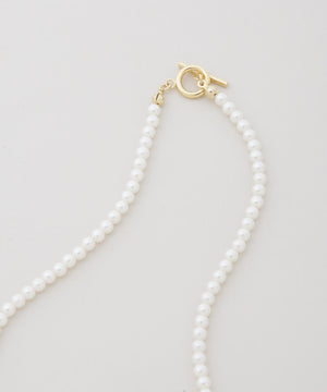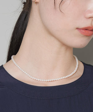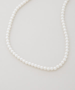 シンプルで合わせやすいイミテーションパールのネックレス。小さ目なパールで単品使いも重ねづけもしやすく、オフィスからオケージョンシーンまで幅広く活躍するアイテムです。