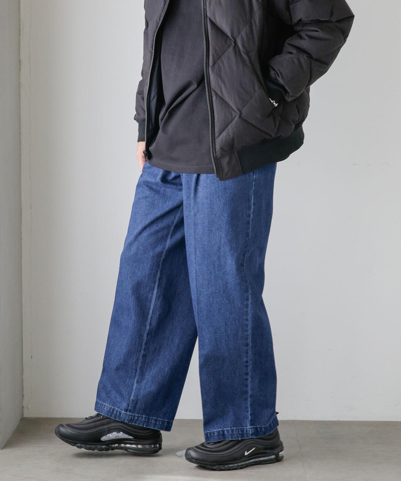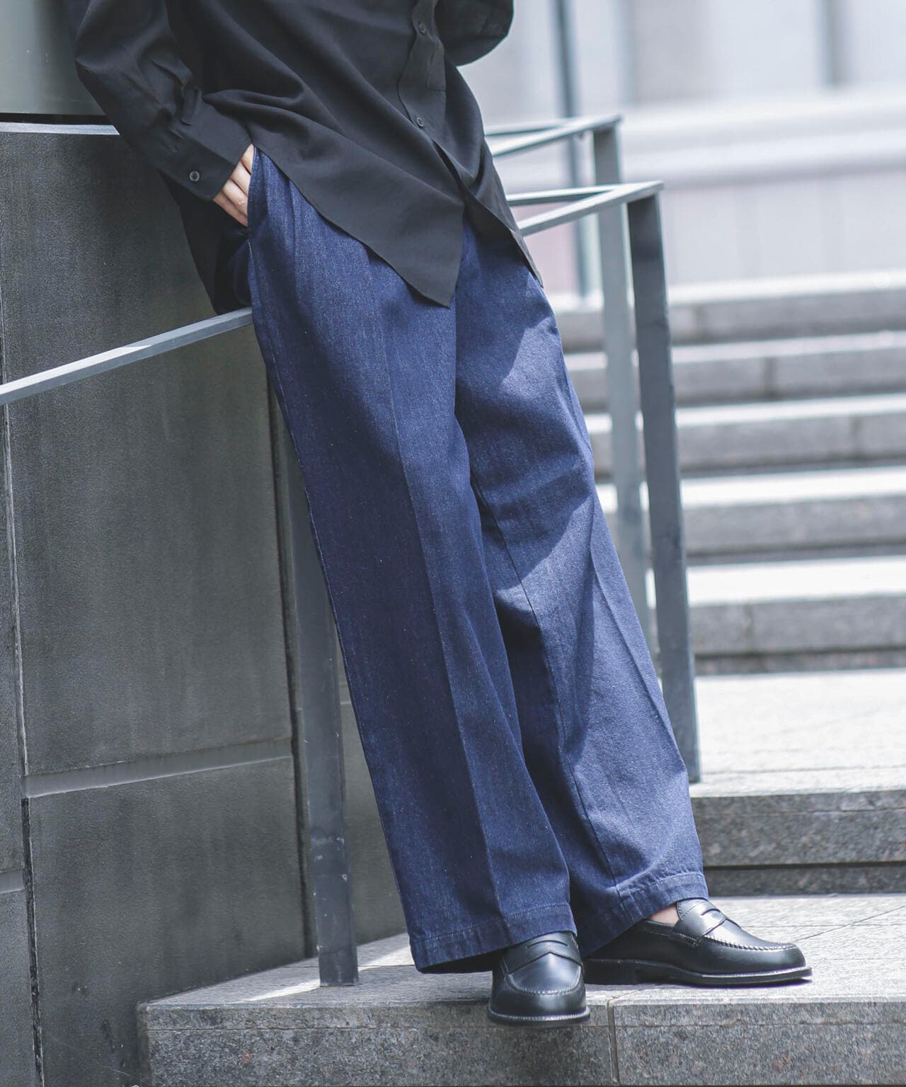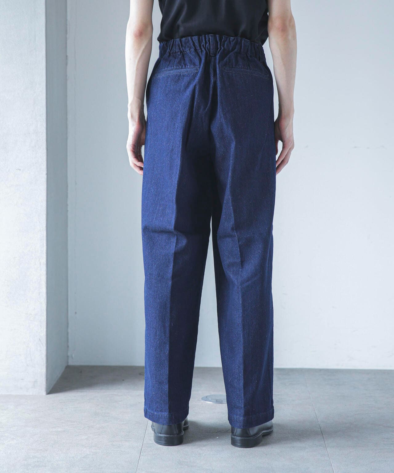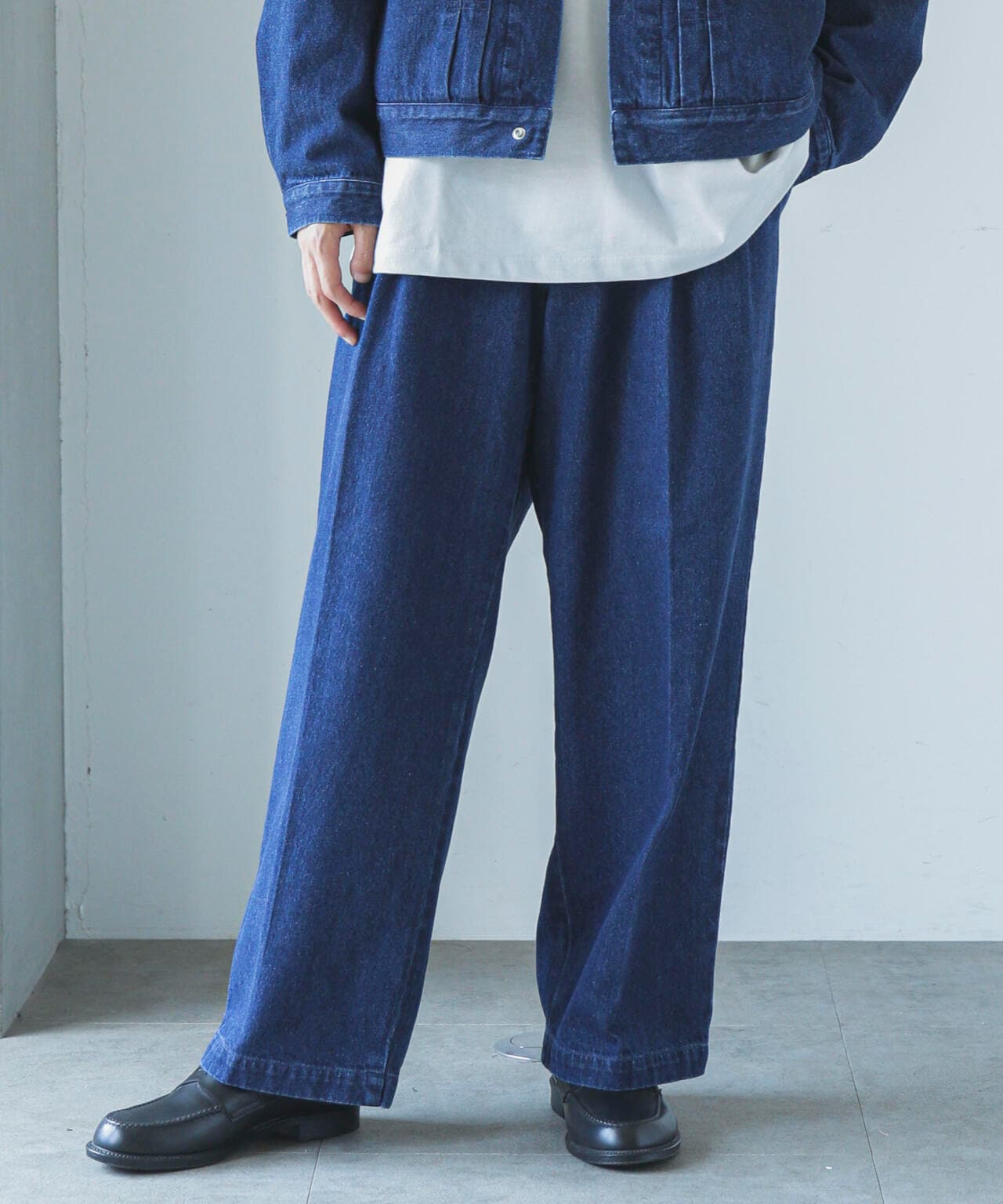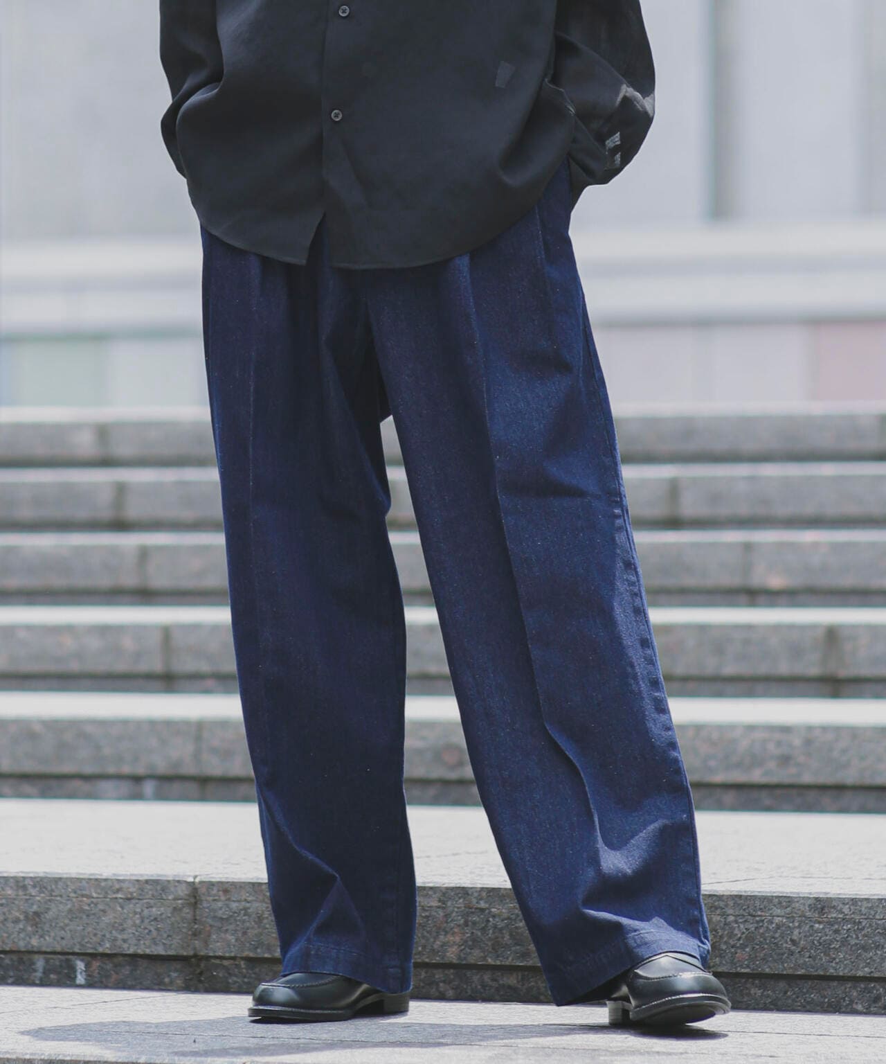 程よい肉感のデニムに2タックを施し腰、ヒップ回りにゆとりを持たせたワイドシルエット。