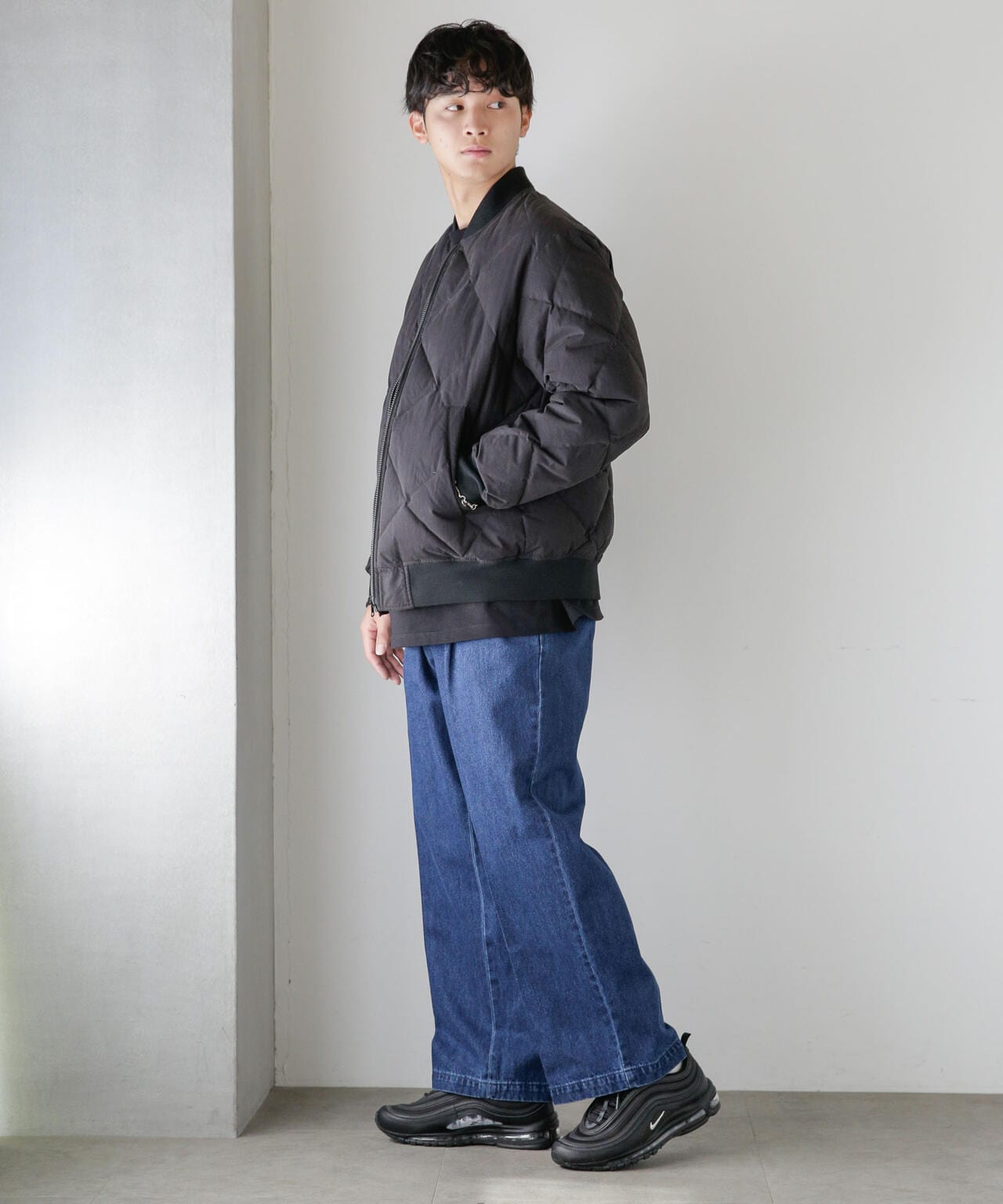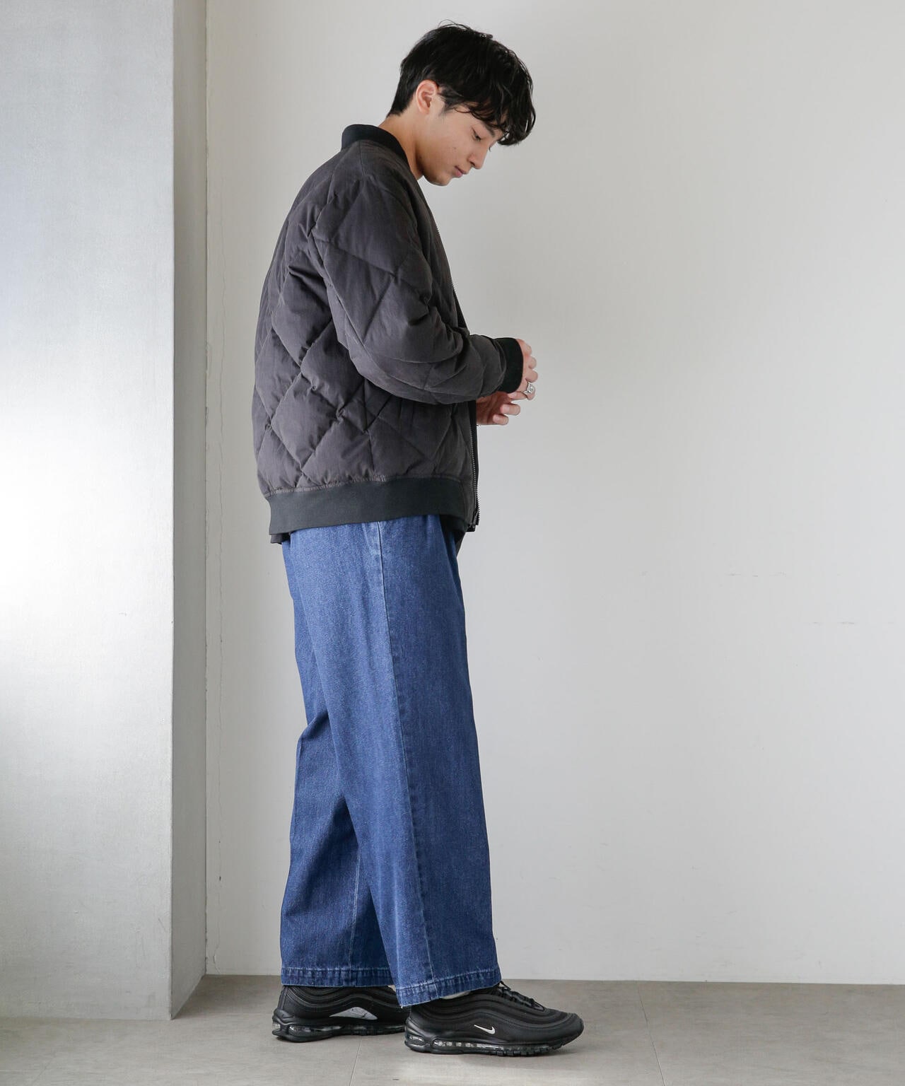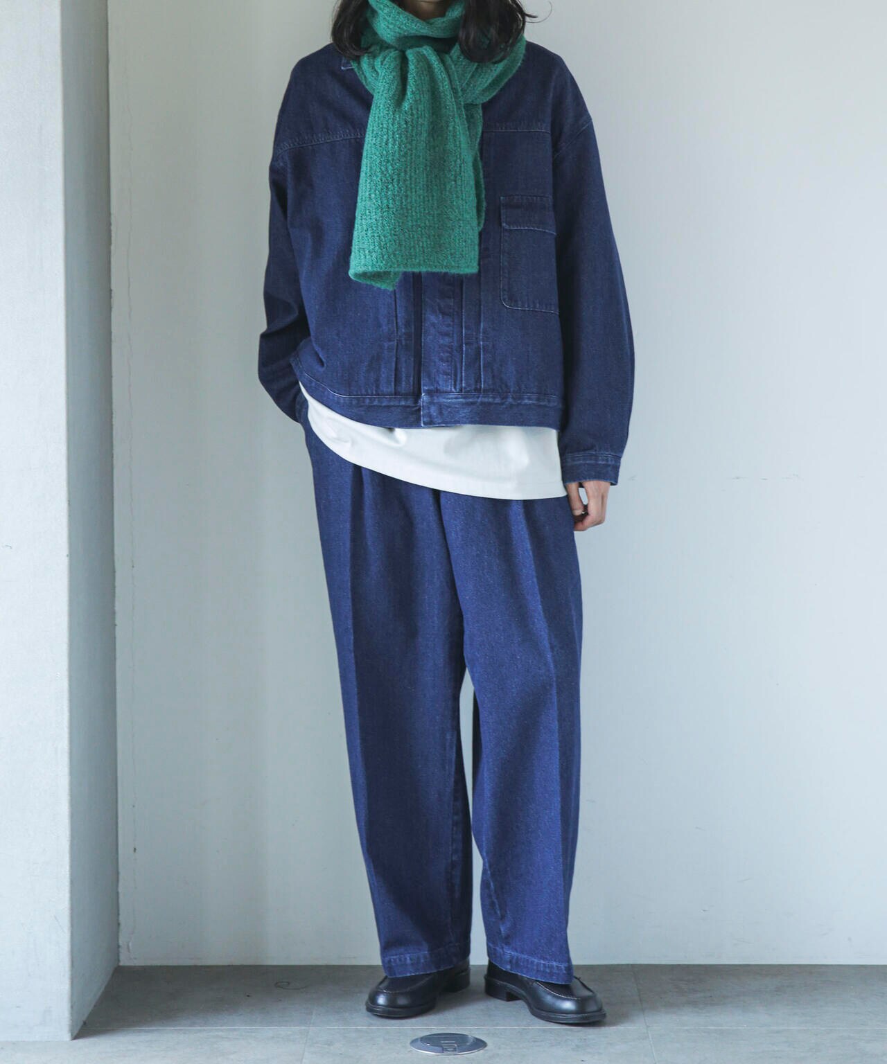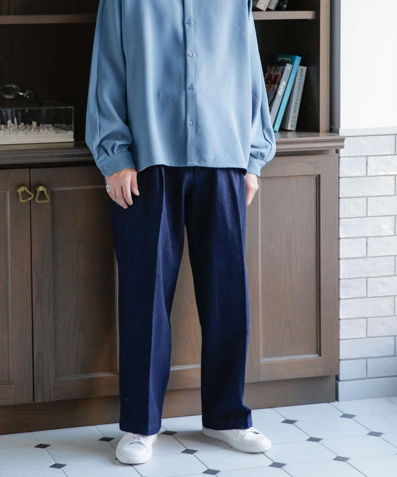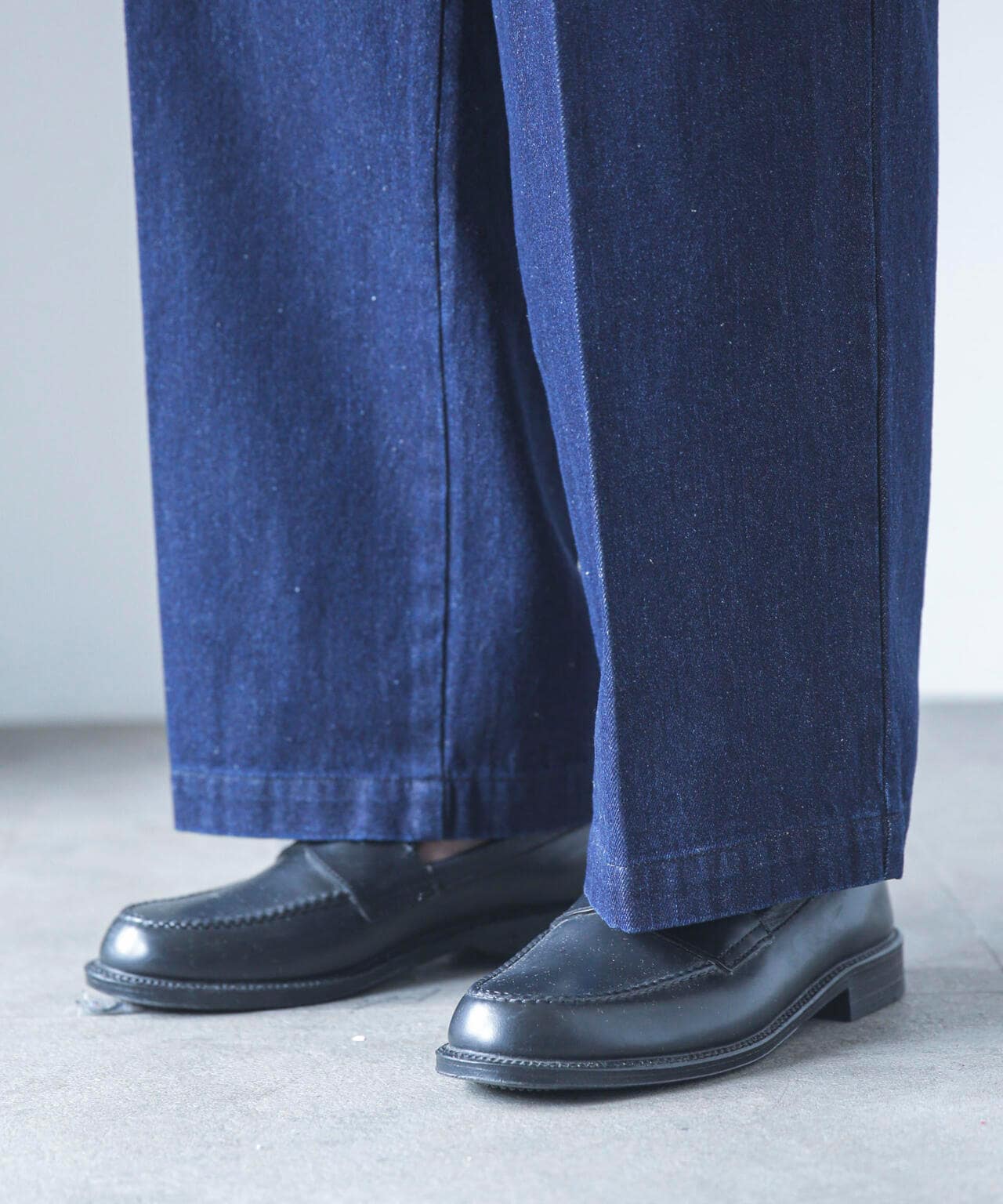 程よい肉感のデニムに2タックを施し腰、ヒップ回りにゆとりを持たせたワイドシルエット。