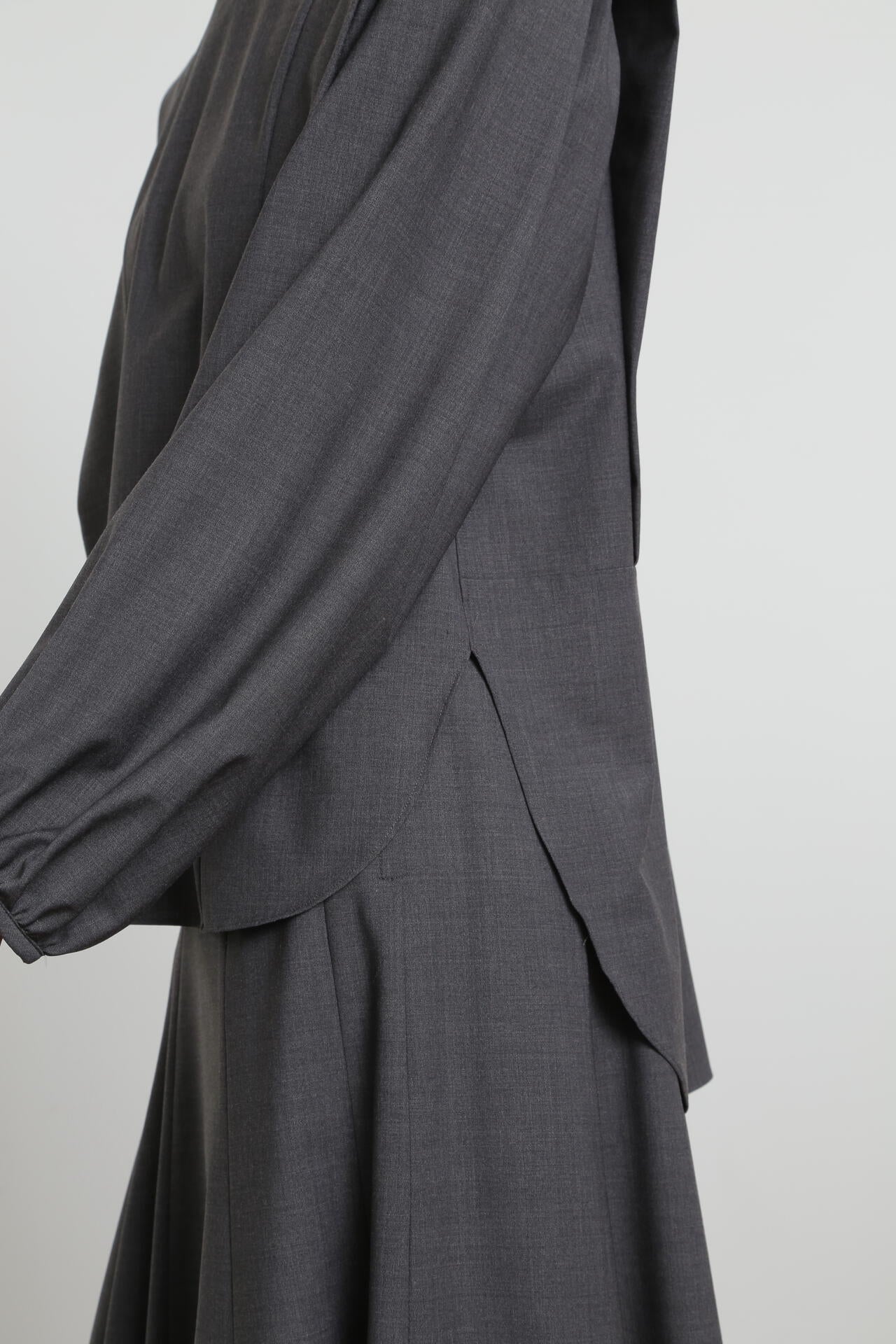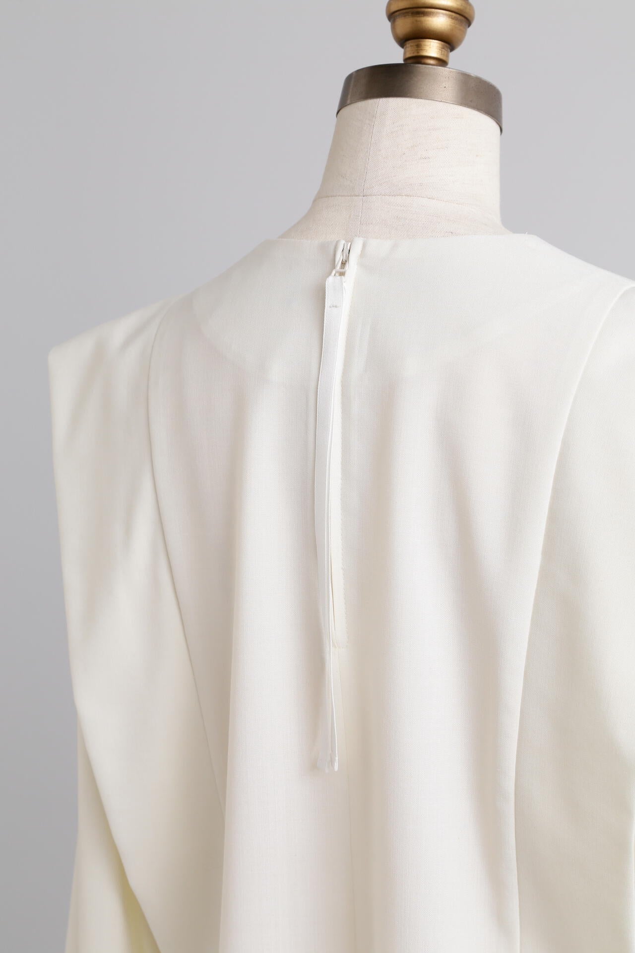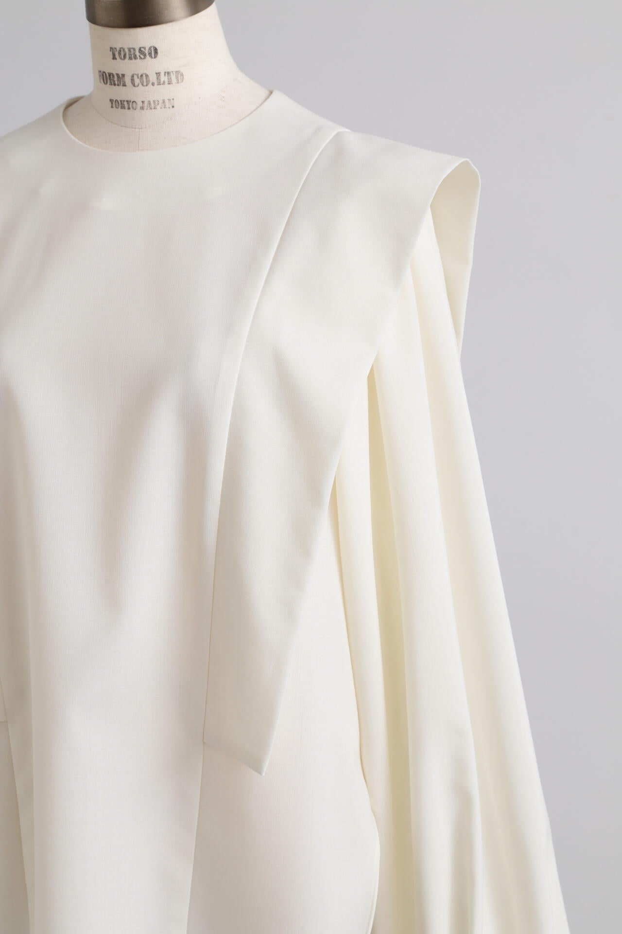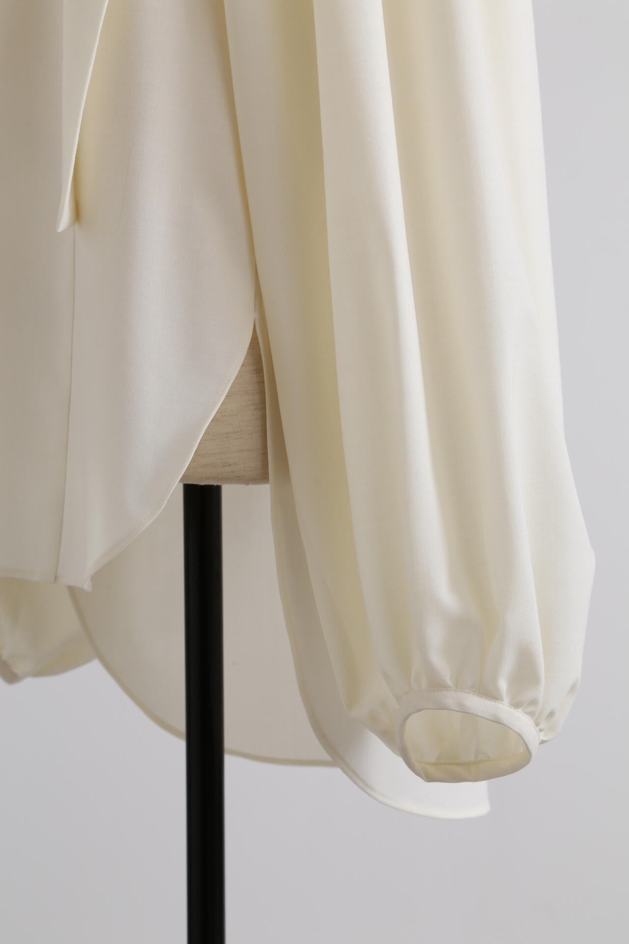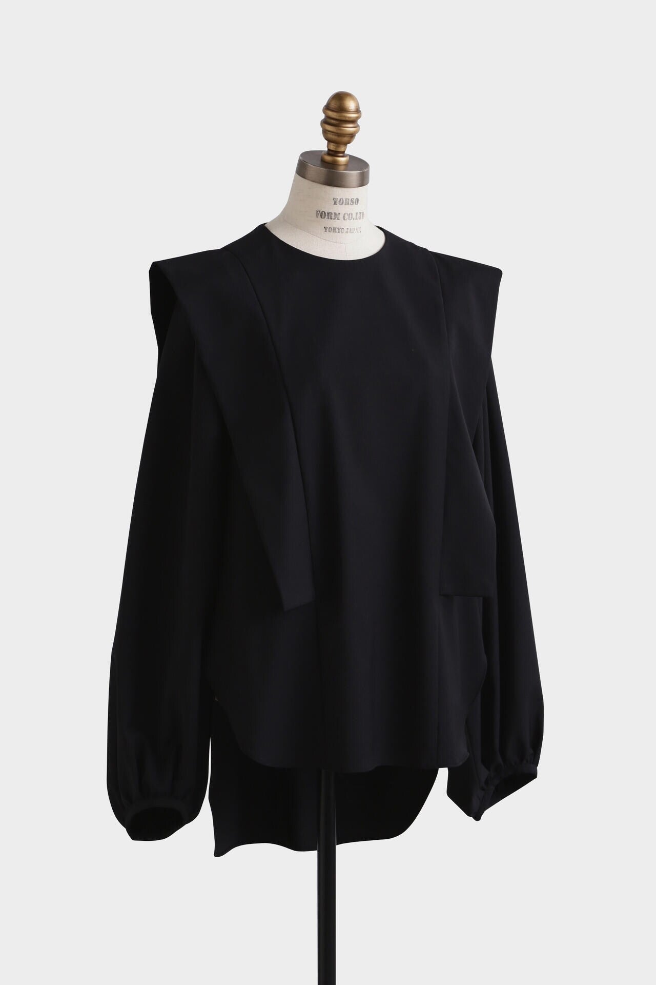 クールな表情を醸し出すショルダータックと、ボリュームスリーブが着映えするブラウス。