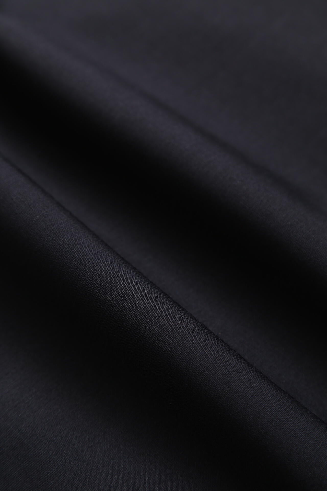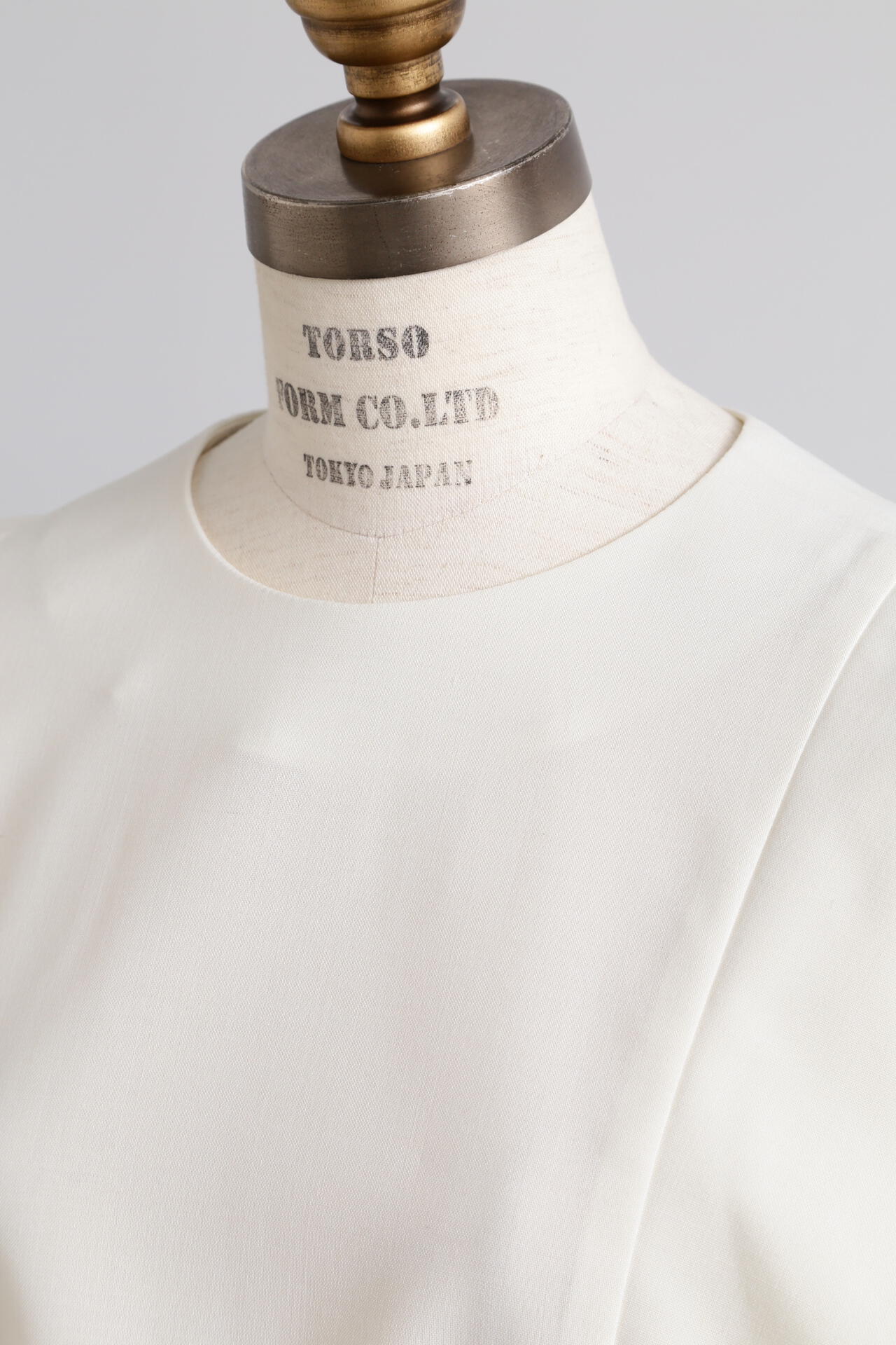 ドレープと微光沢感が美しい、コンパクトなウールブレンドのマテリアルがキチンと感のあるクリーンなスタイリングを叶えます。