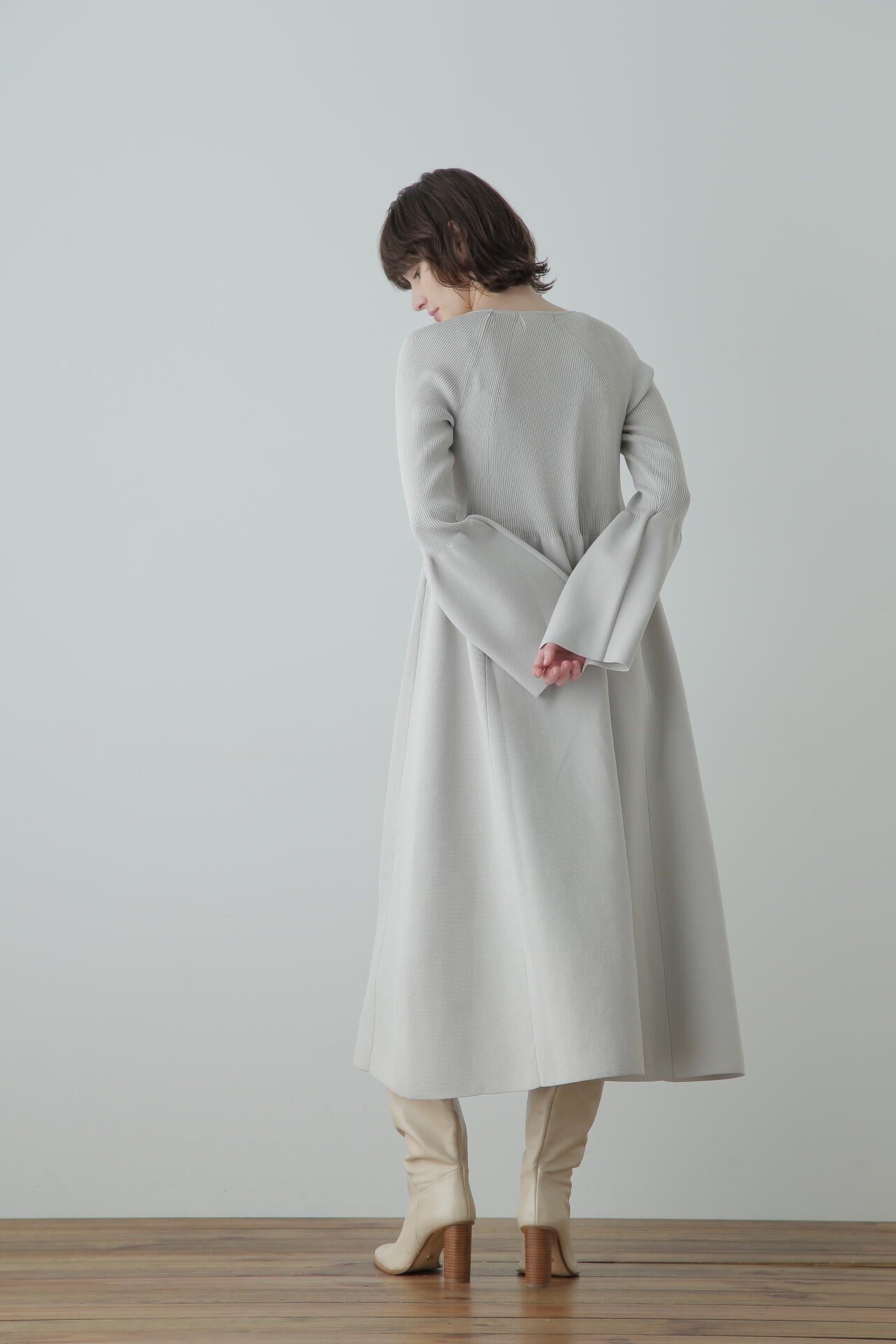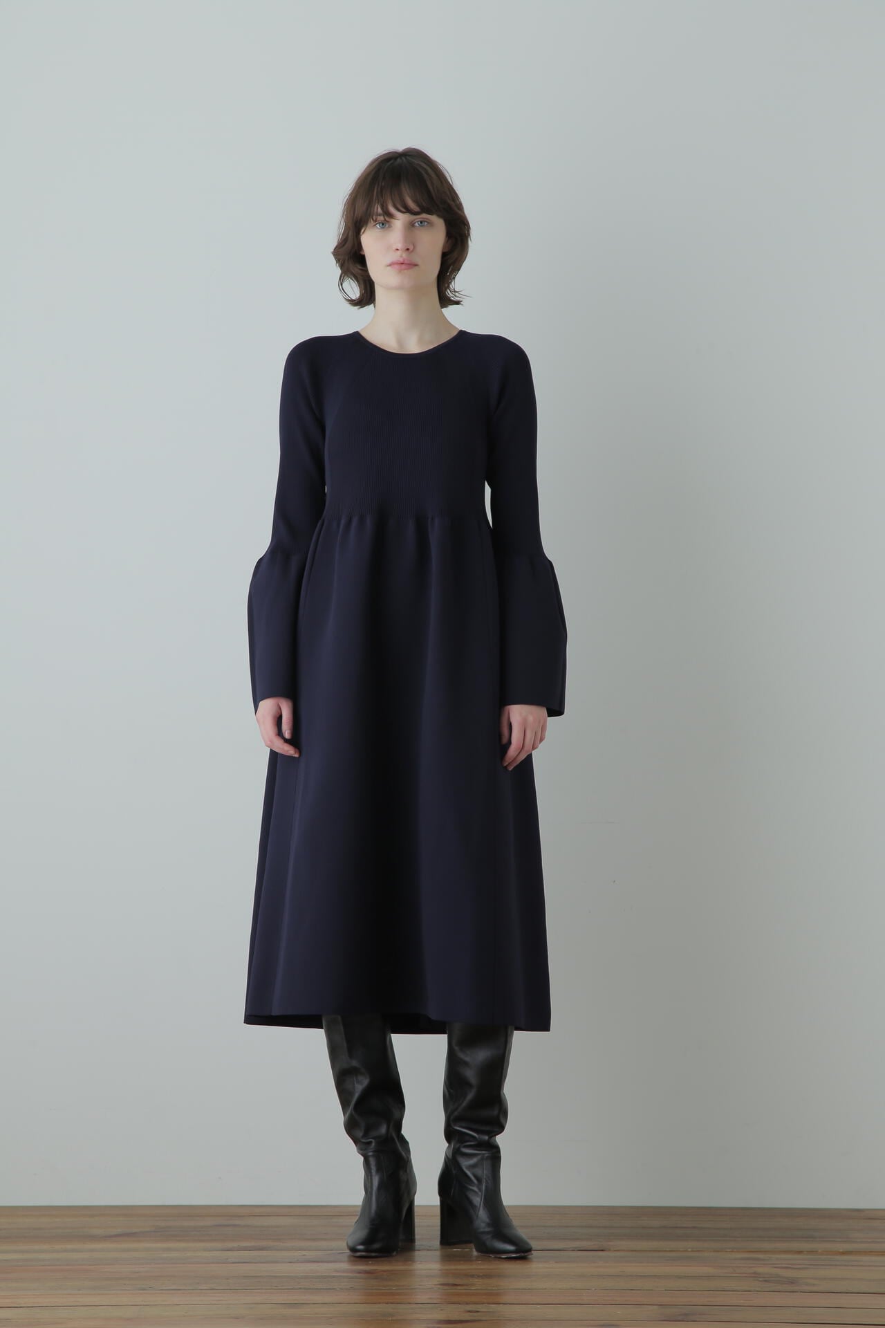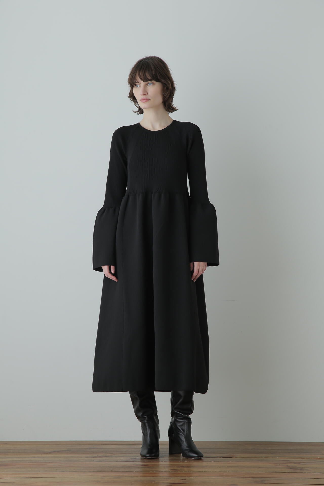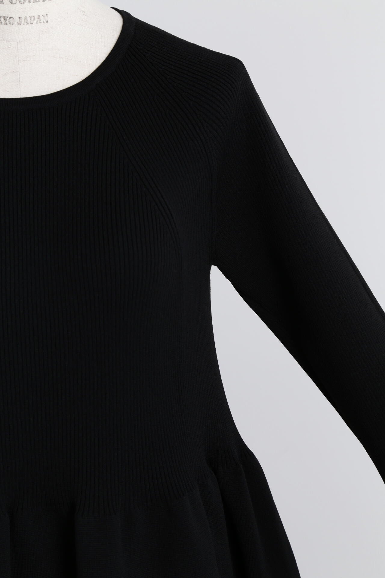 ハイツイストのポリエステル糸を使用した、フォルミーなデイドレス。ウエストコンシャスなペプラムデザインが特徴です。すっきりとしたラウンドネックと、袖口とペプラムが華やかな印象のデイドレス。