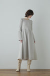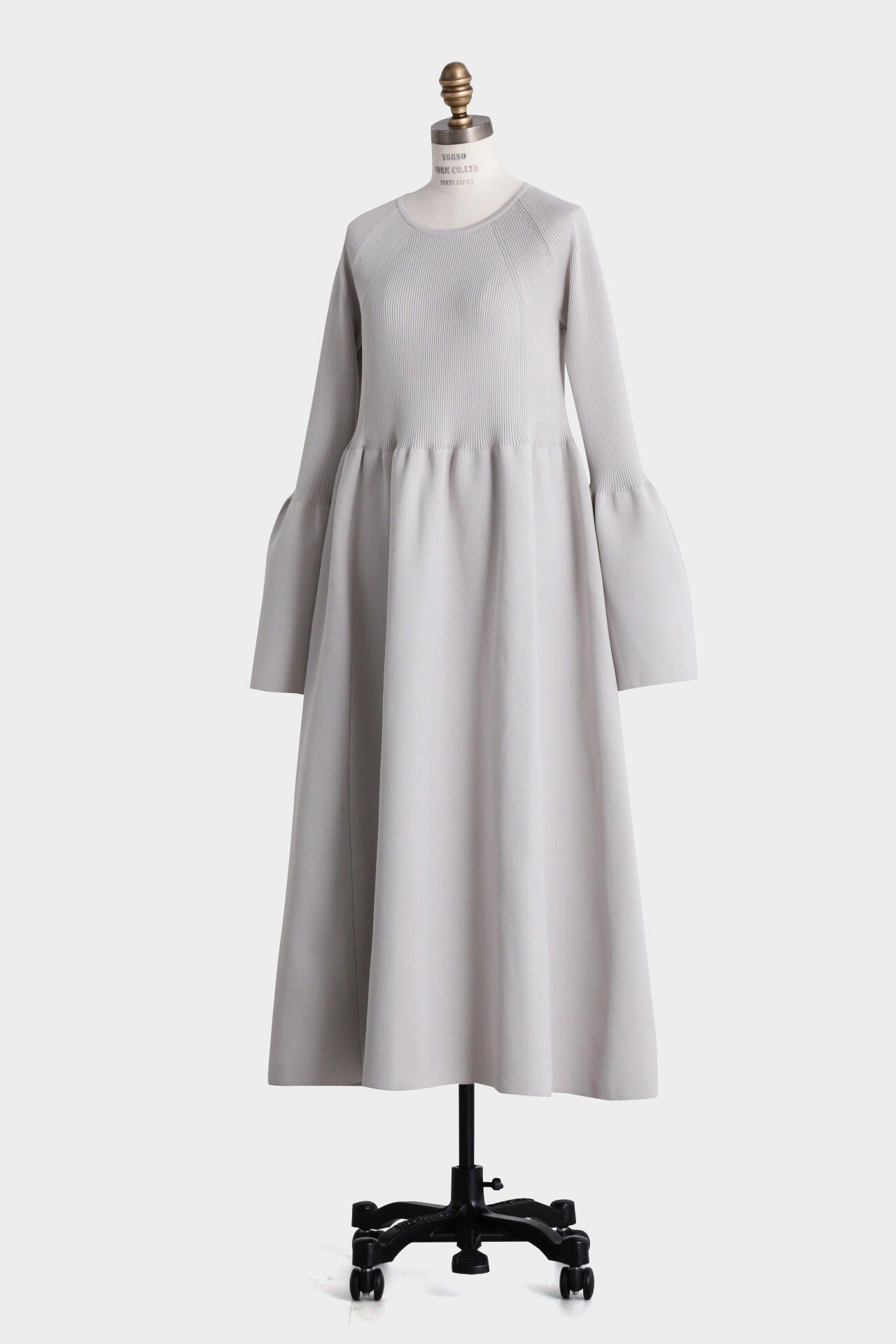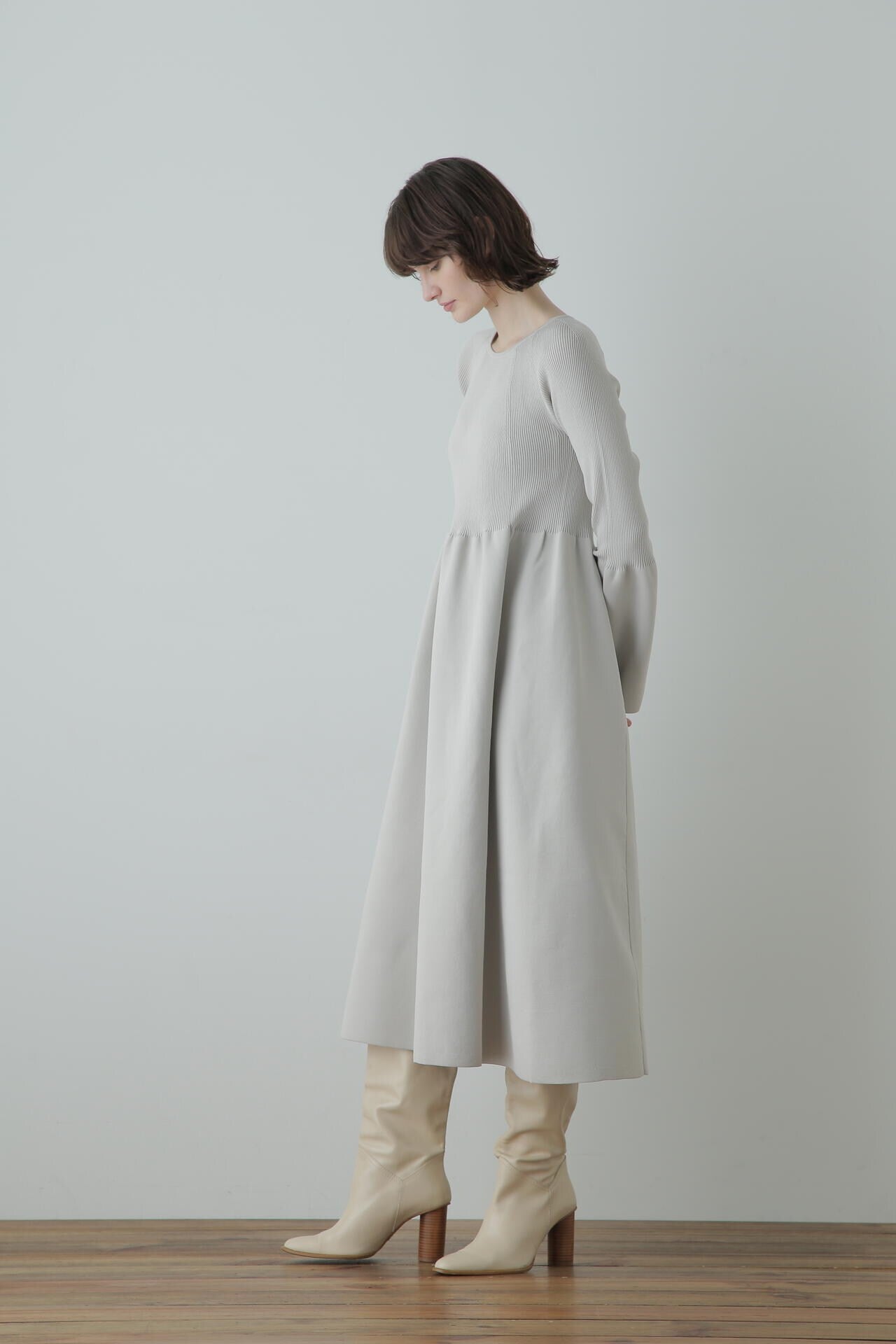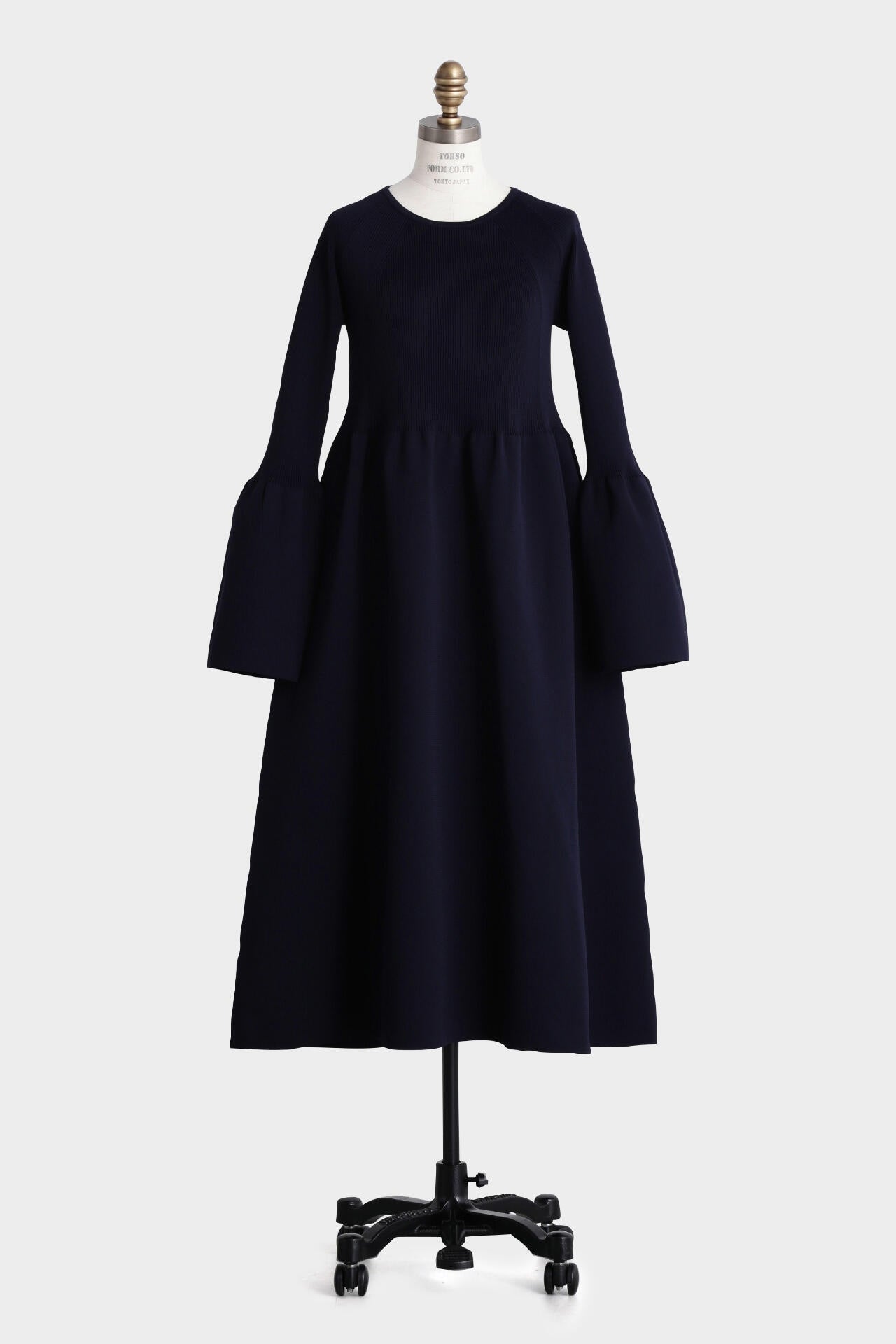 ハイツイストのポリエステル糸を使用した、フォルミーなデイドレス。ウエストコンシャスなペプラムデザインが特徴です。すっきりとしたラウンドネックと、袖口とペプラムが華やかな印象のデイドレス。