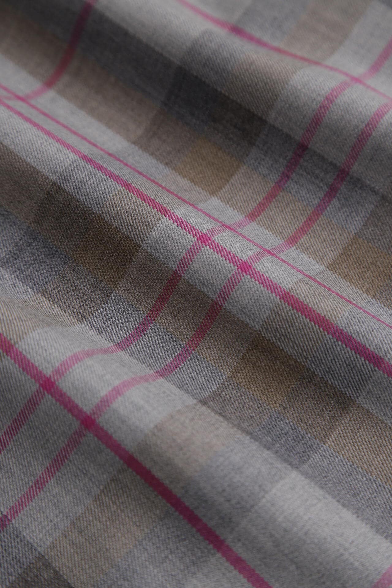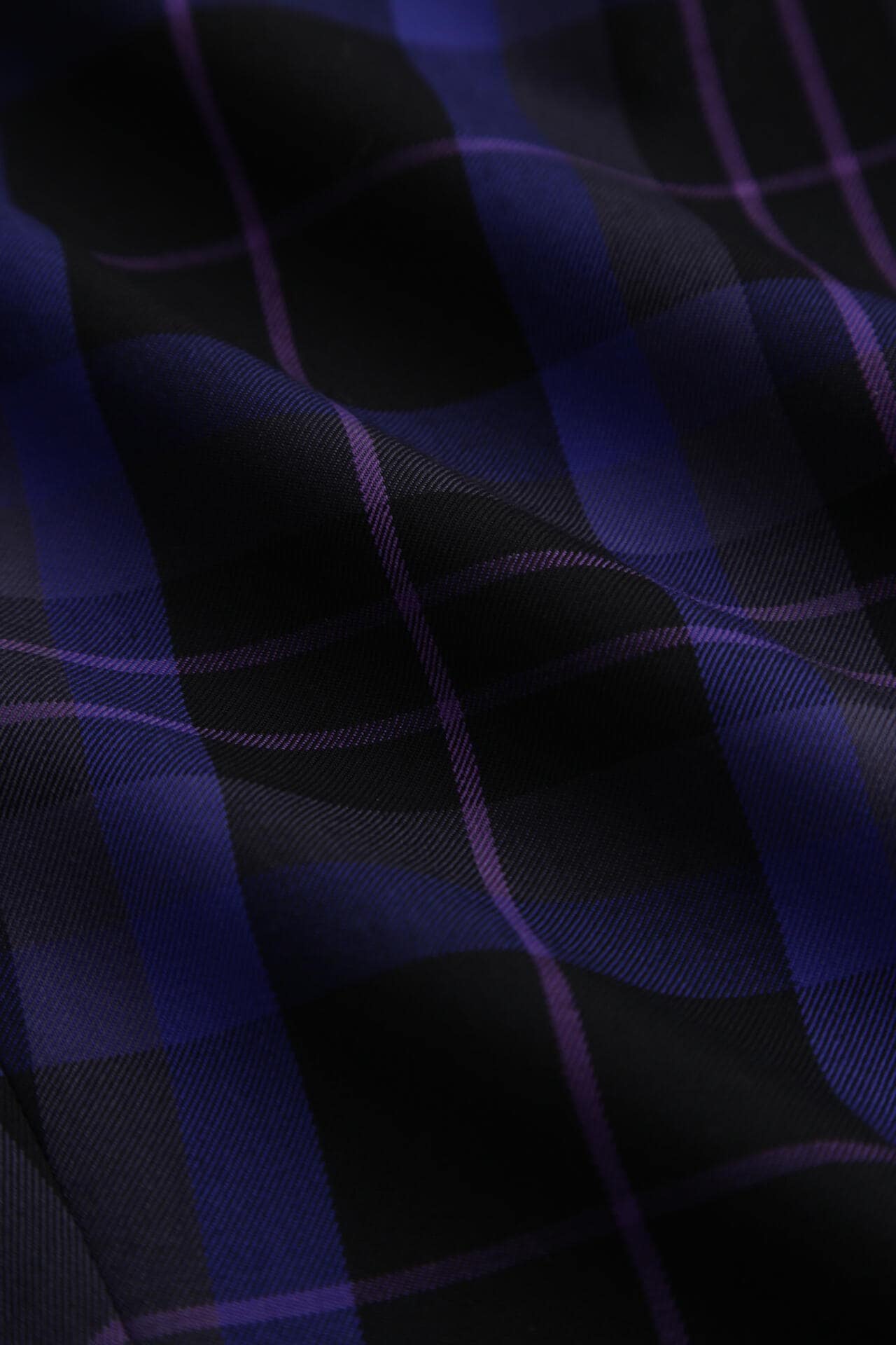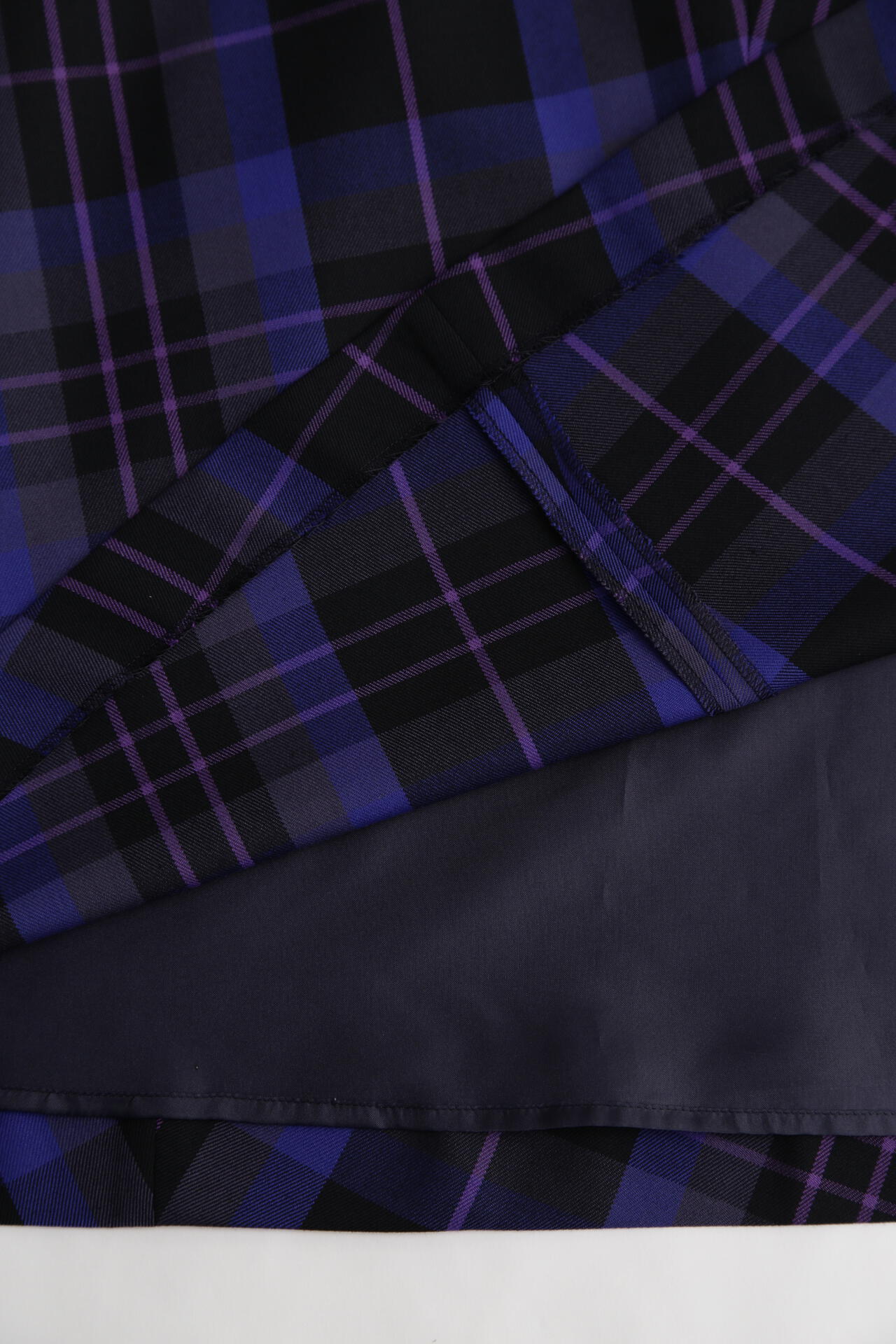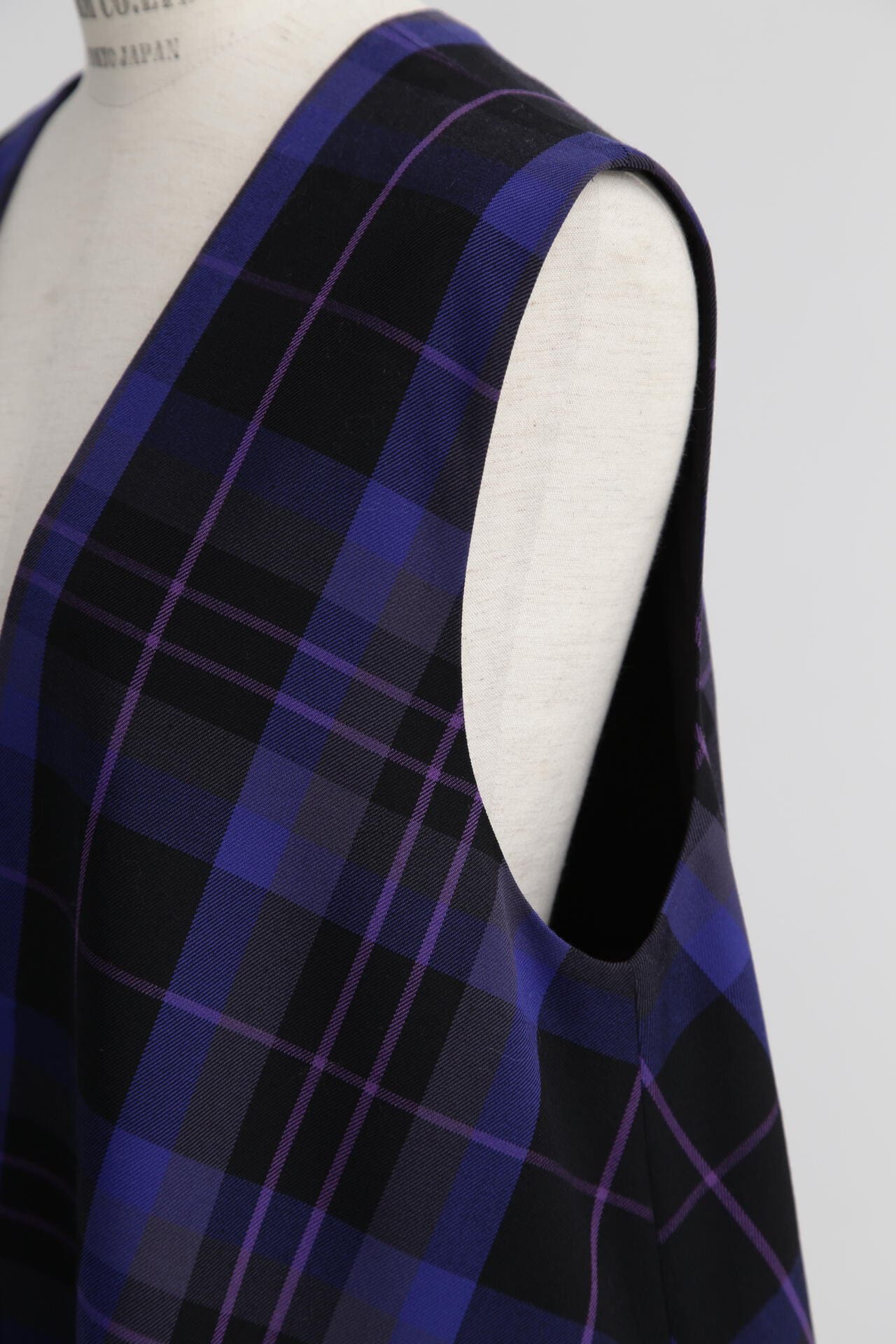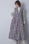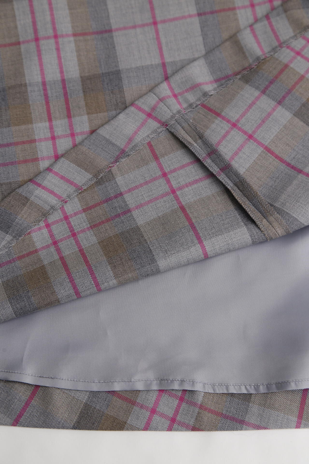 ピンクのアクセントカラーを加えた、トラッドとは一線を画す大柄チェックのDRESS。深めのシャープなVネックと、エレガントなラウンドネックの2WAYでご着用頂けます。2/48のウール素材を国内の尾州の産地でコンパクトなサージに織り上げ、さらにハリ感を持たせる仕上げを施したオリジナルのチェック柄素材を使用しています。