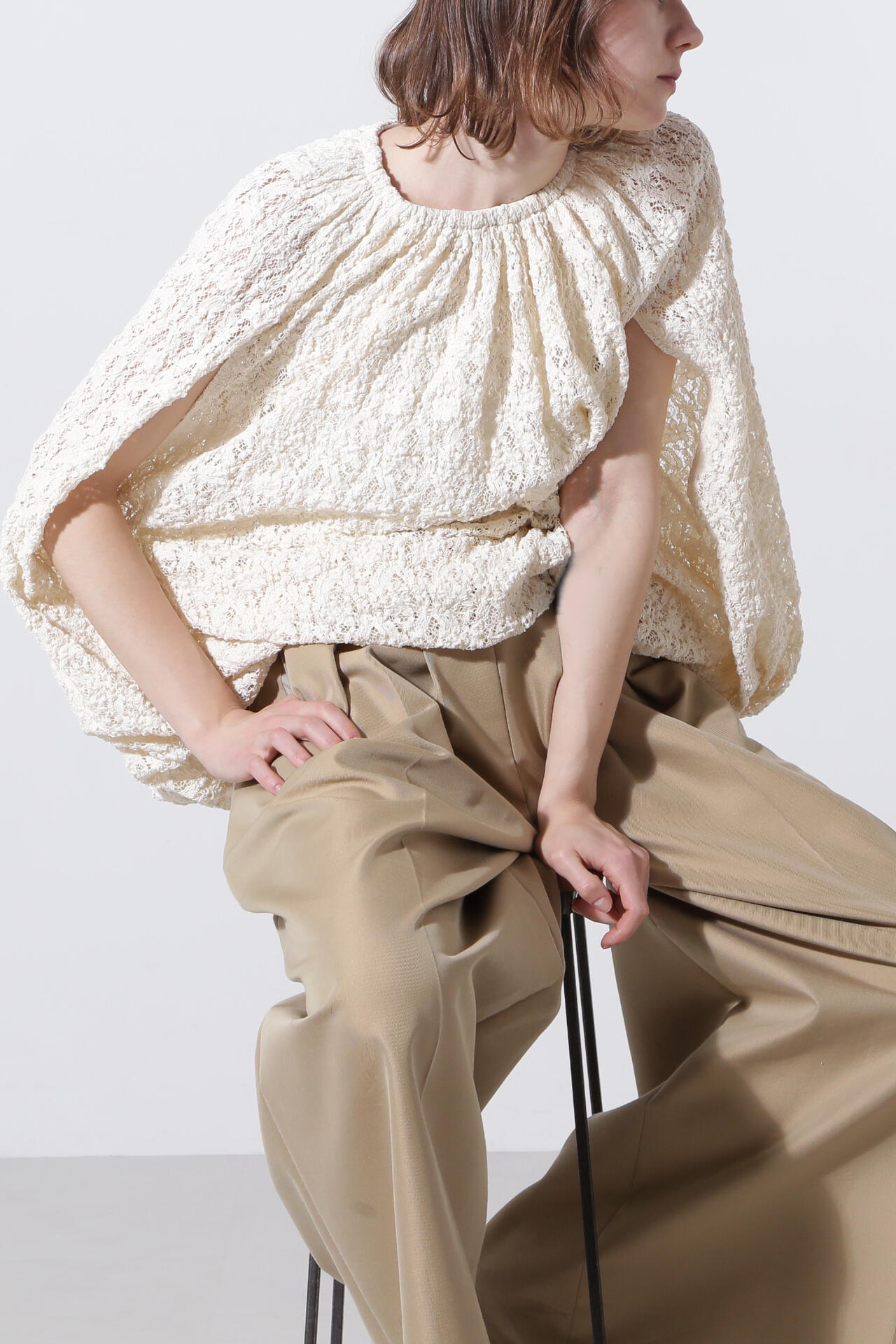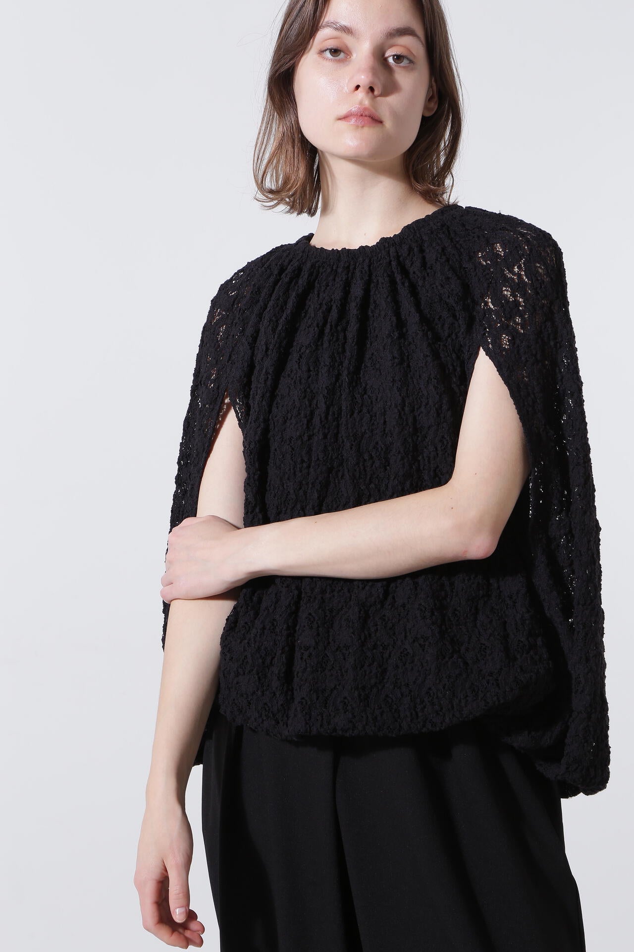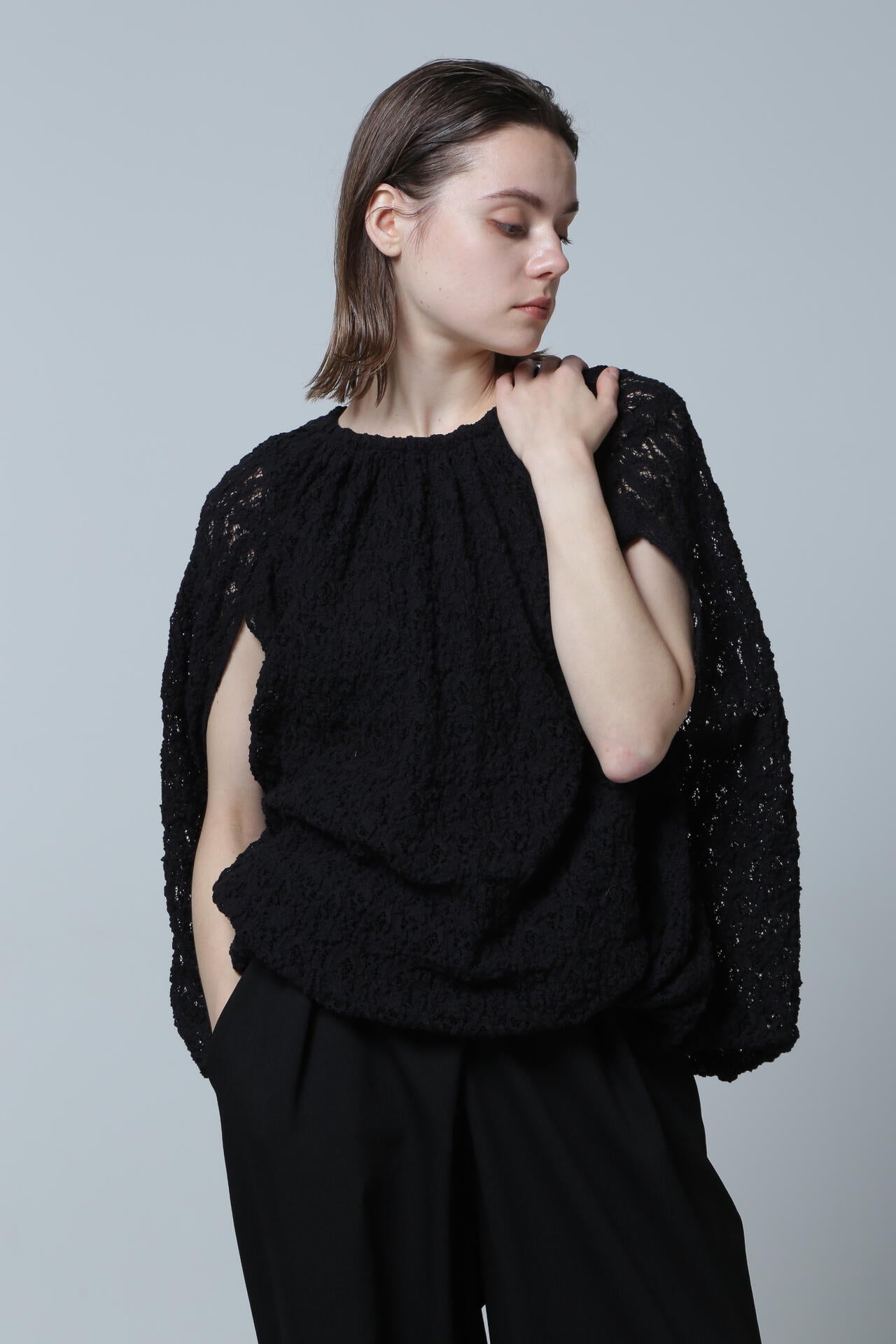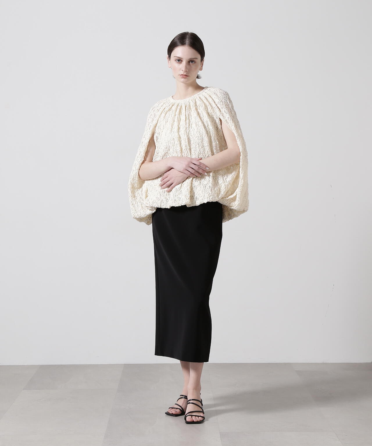 気になる二の腕をカバーしつつ、着映えするポンチョデザインに仕上げたレーシージャージトップス。