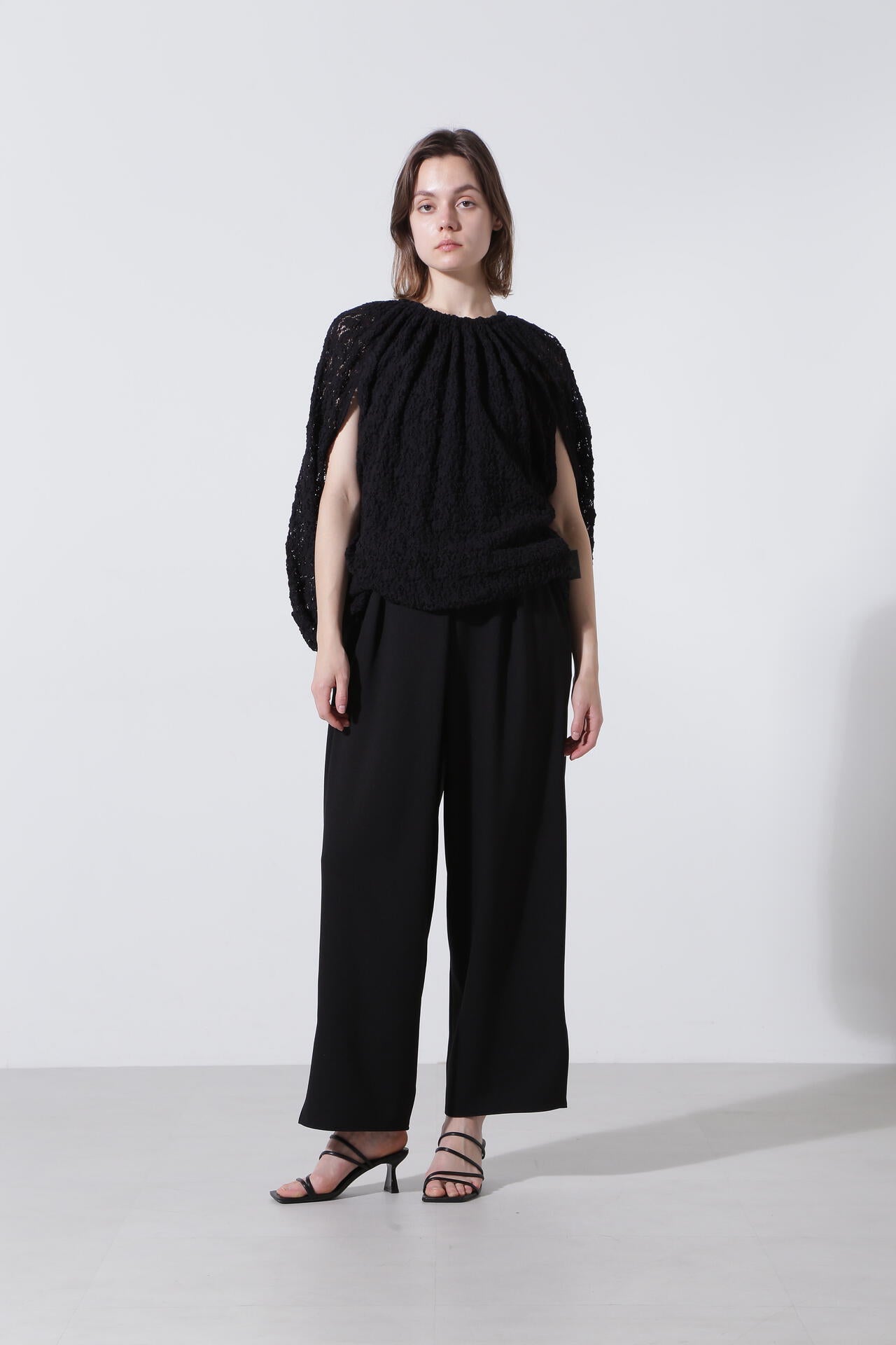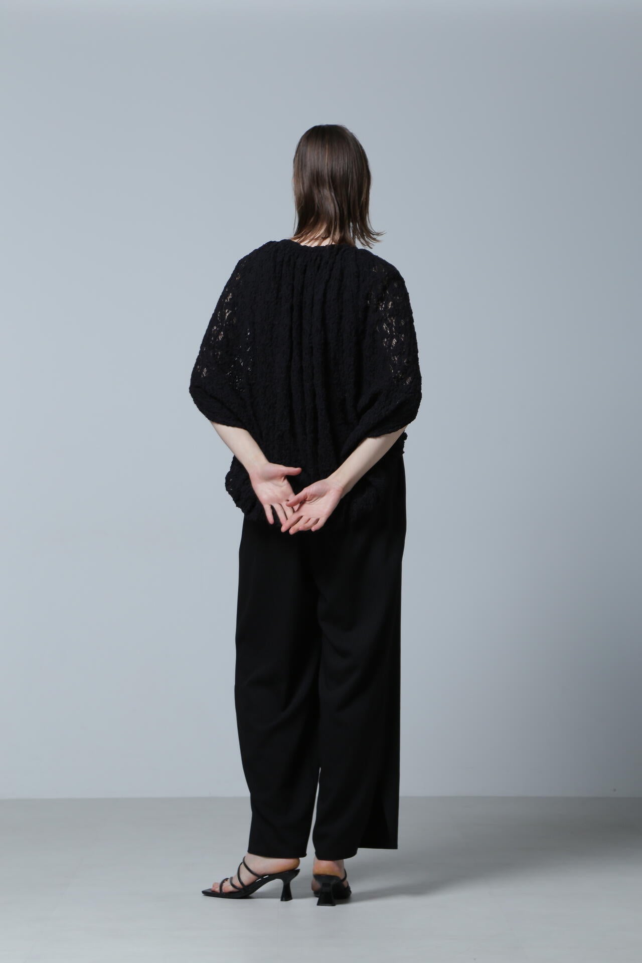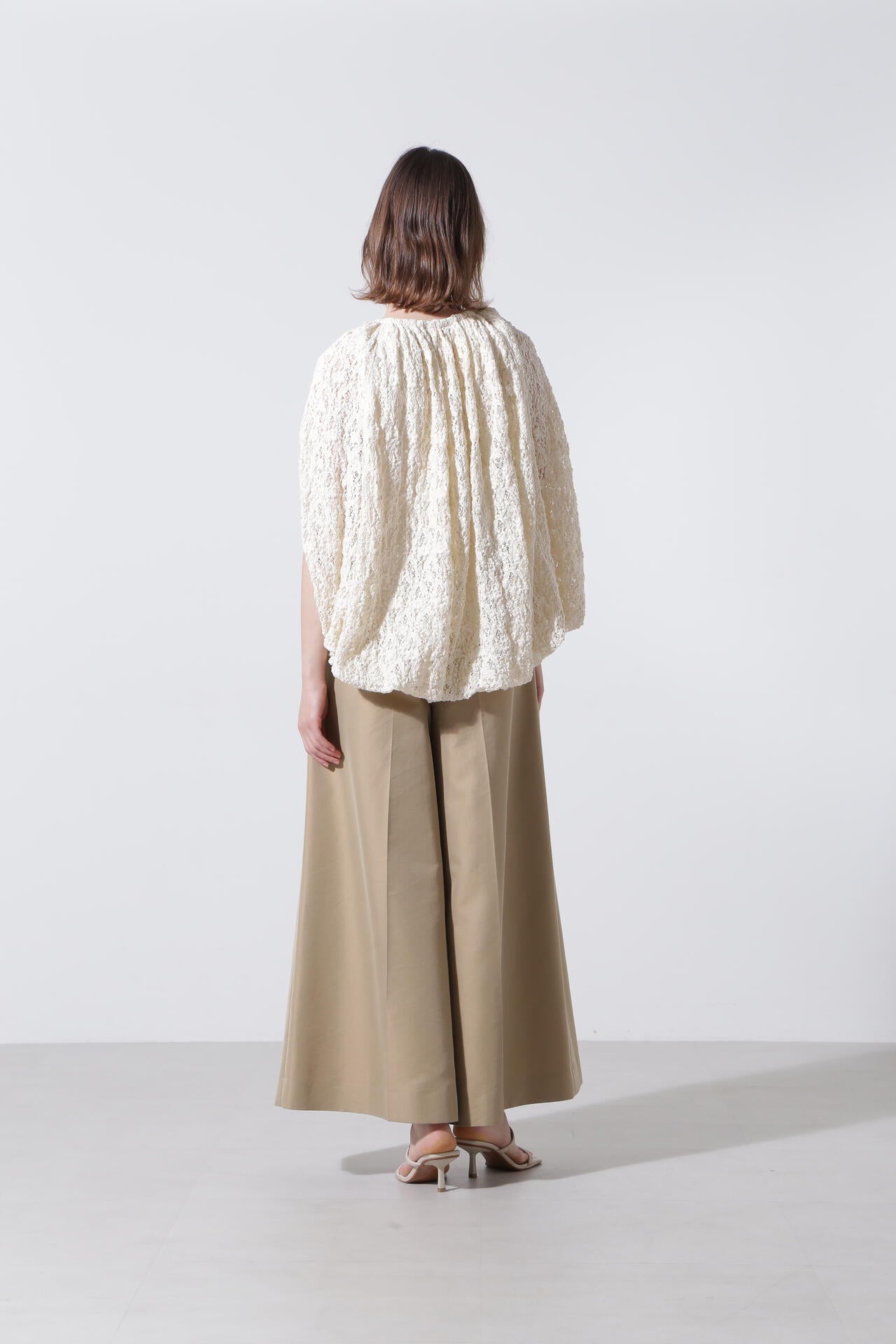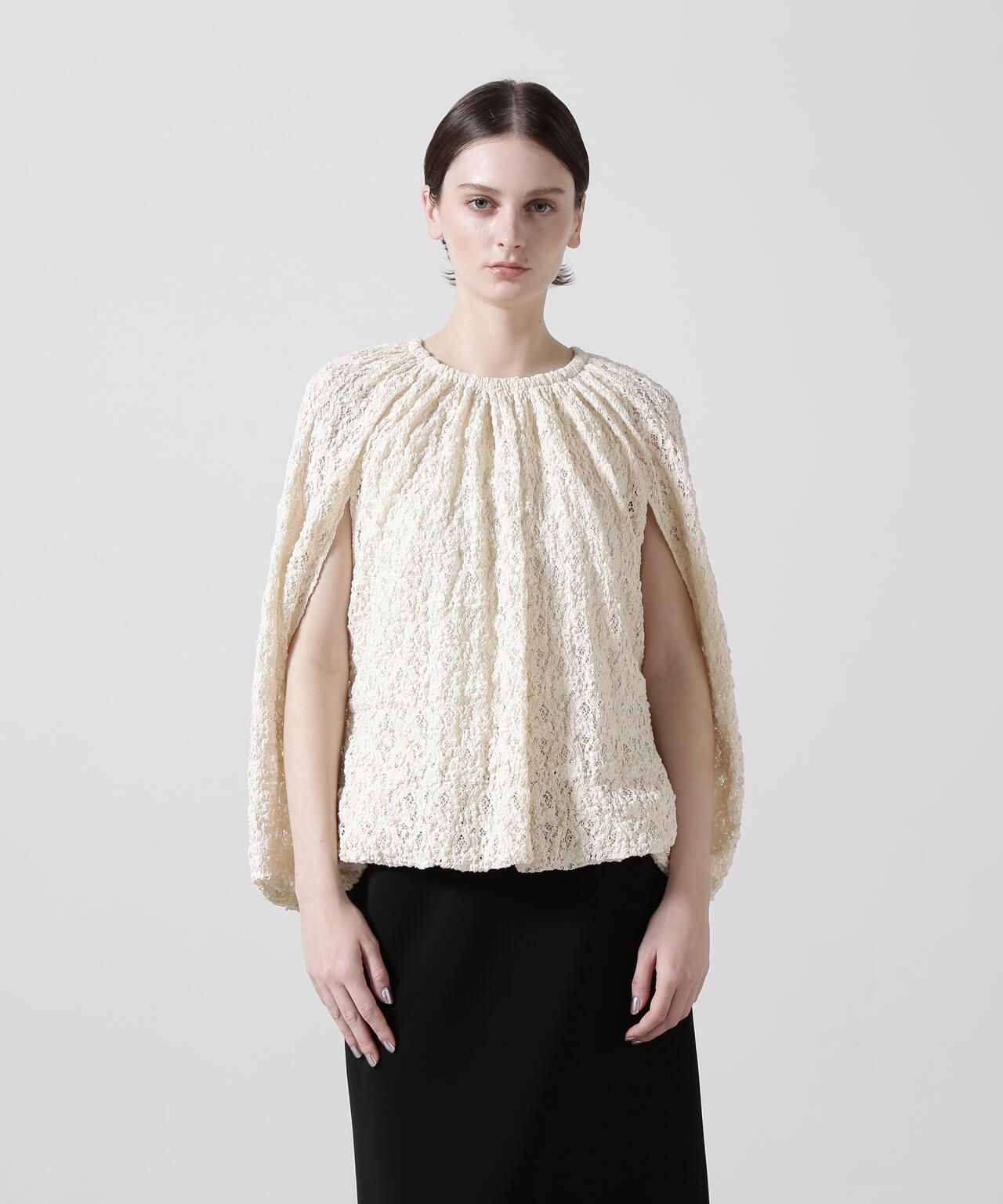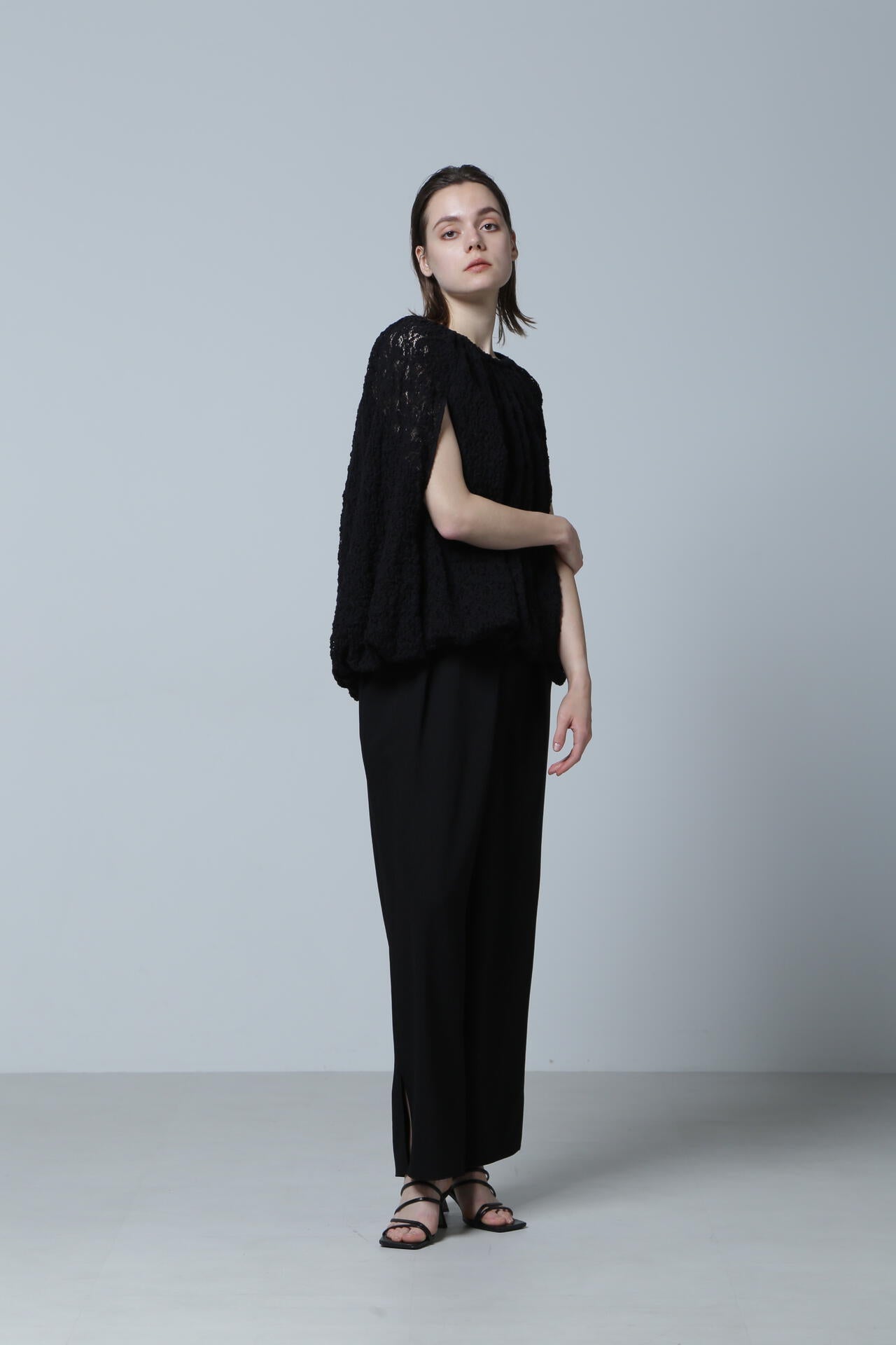 気になる二の腕をカバーしつつ、着映えするポンチョデザインに仕上げたレーシージャージトップス。