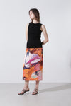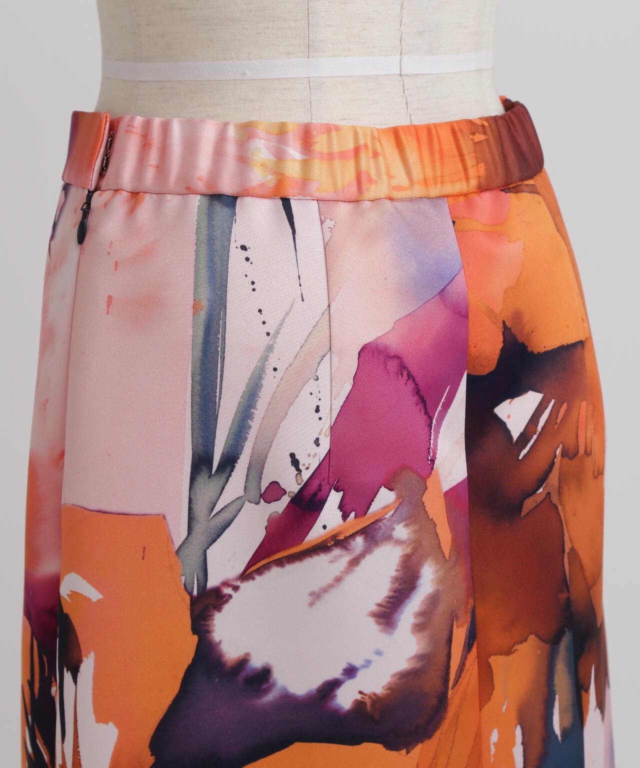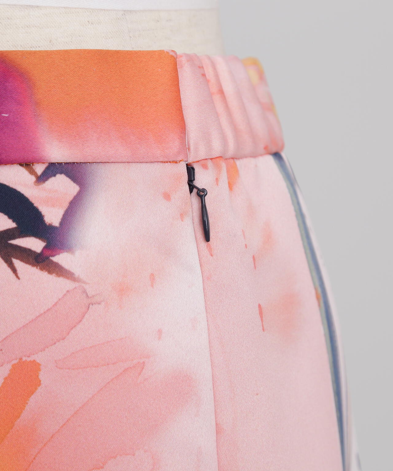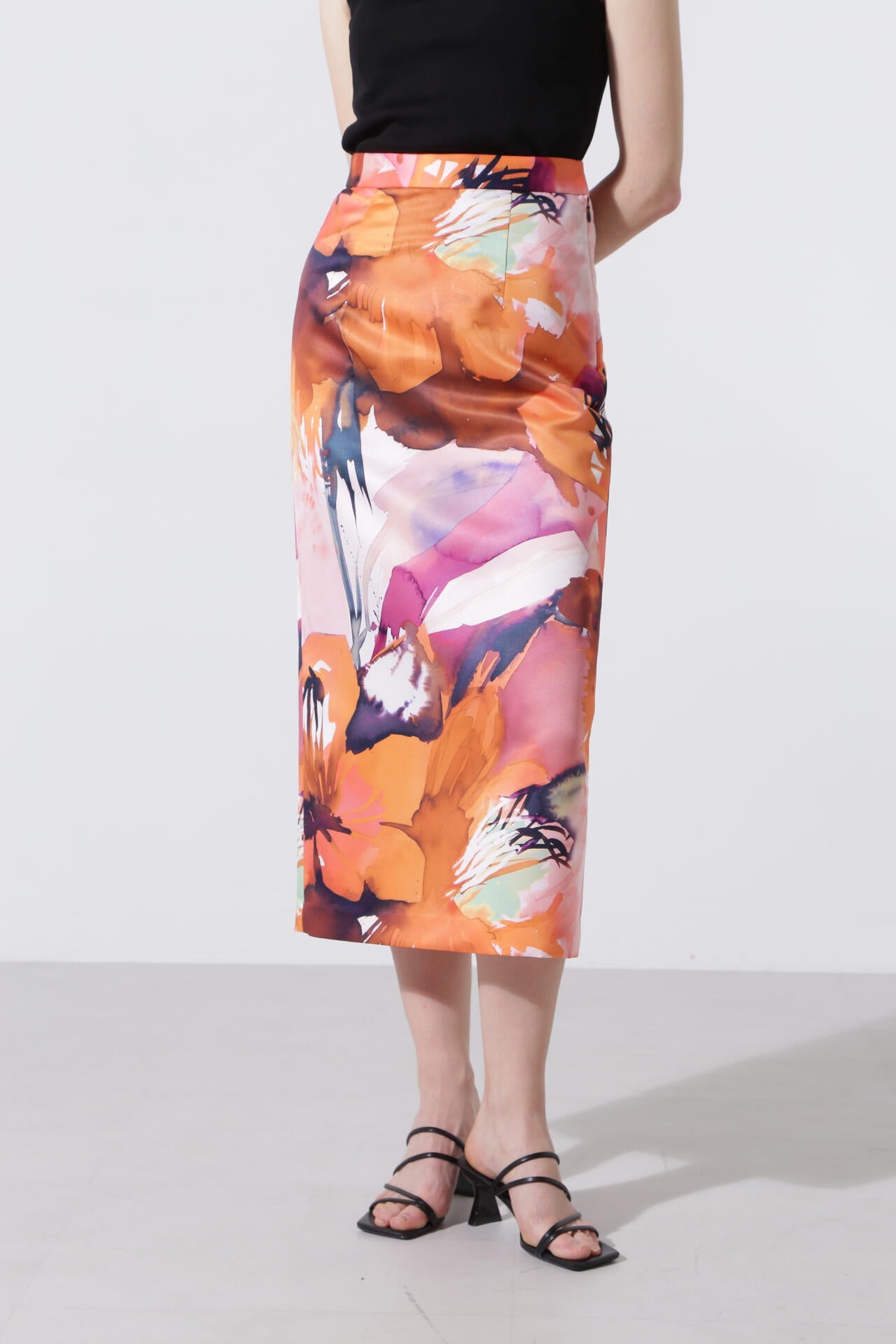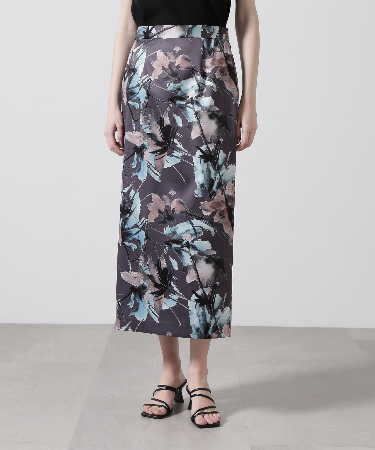 先染め織物やプリントを得意とする老舗メーカーで、プリントはすべて自社で一貫生産されているというこだわりの素材です。特徴的なグラフィックは裏側にまでプリントを施し、細部にまで丁寧さが宿る仕上がりに。そんな上質なプリント素材をあえてミニマルなタイトスカートに仕立てることで、柄の美しさが際立ち、大人の洗練を感じさせるデザインに仕上げました。