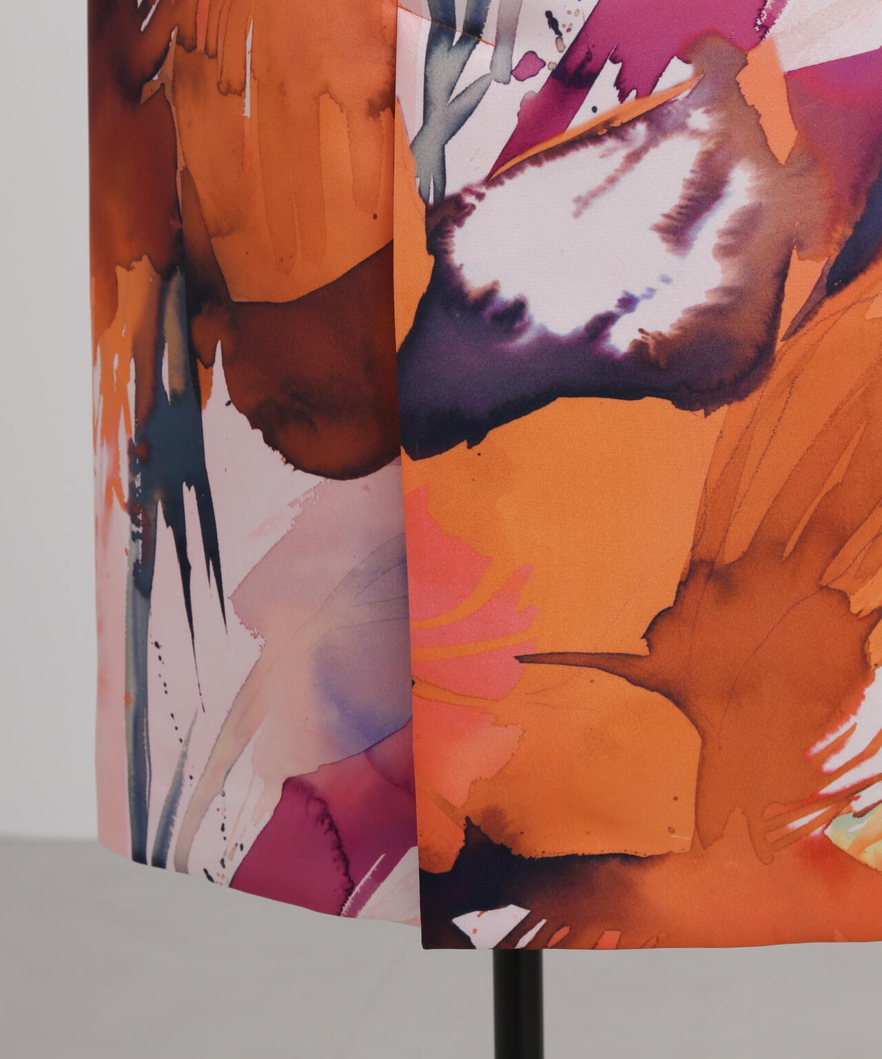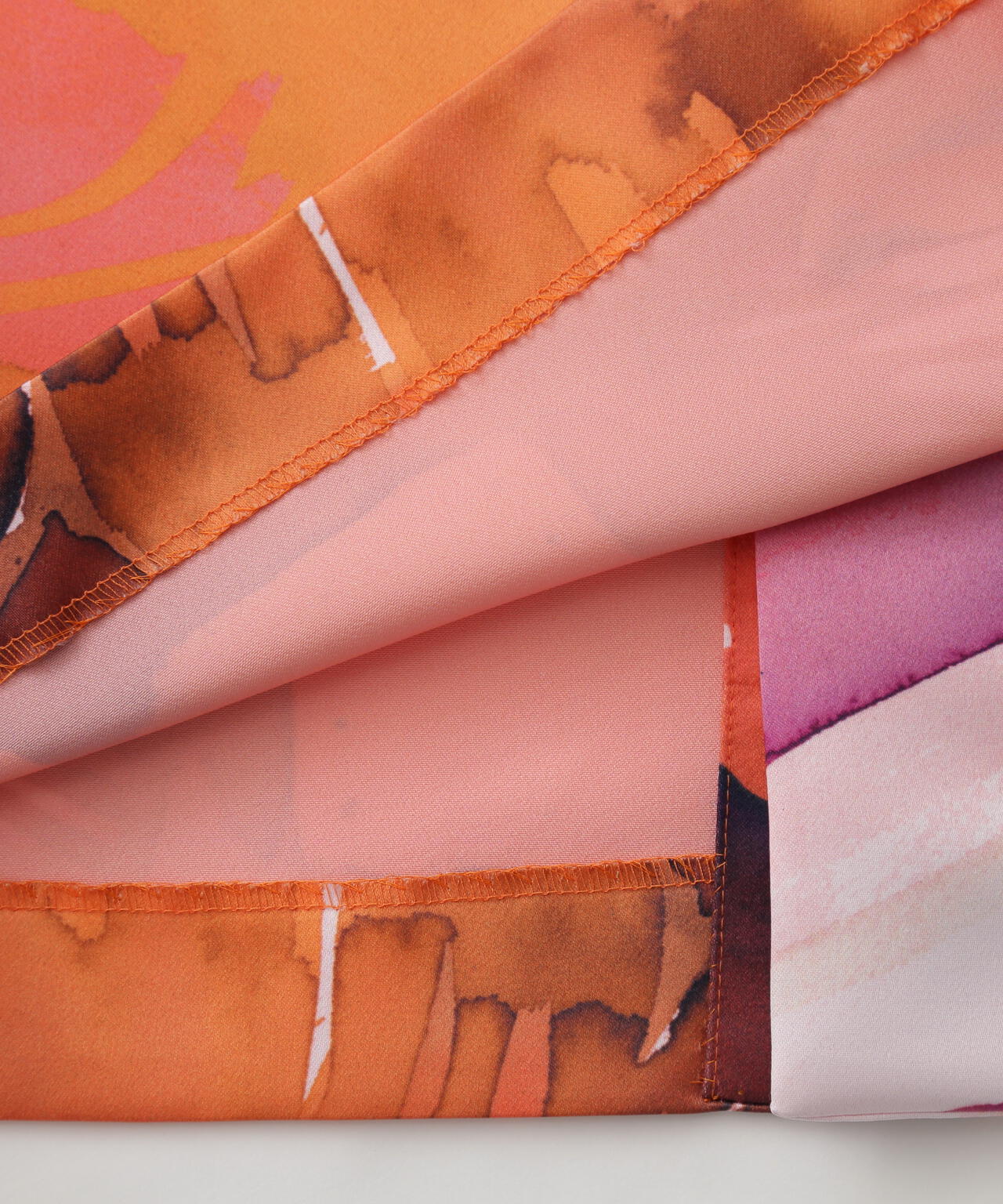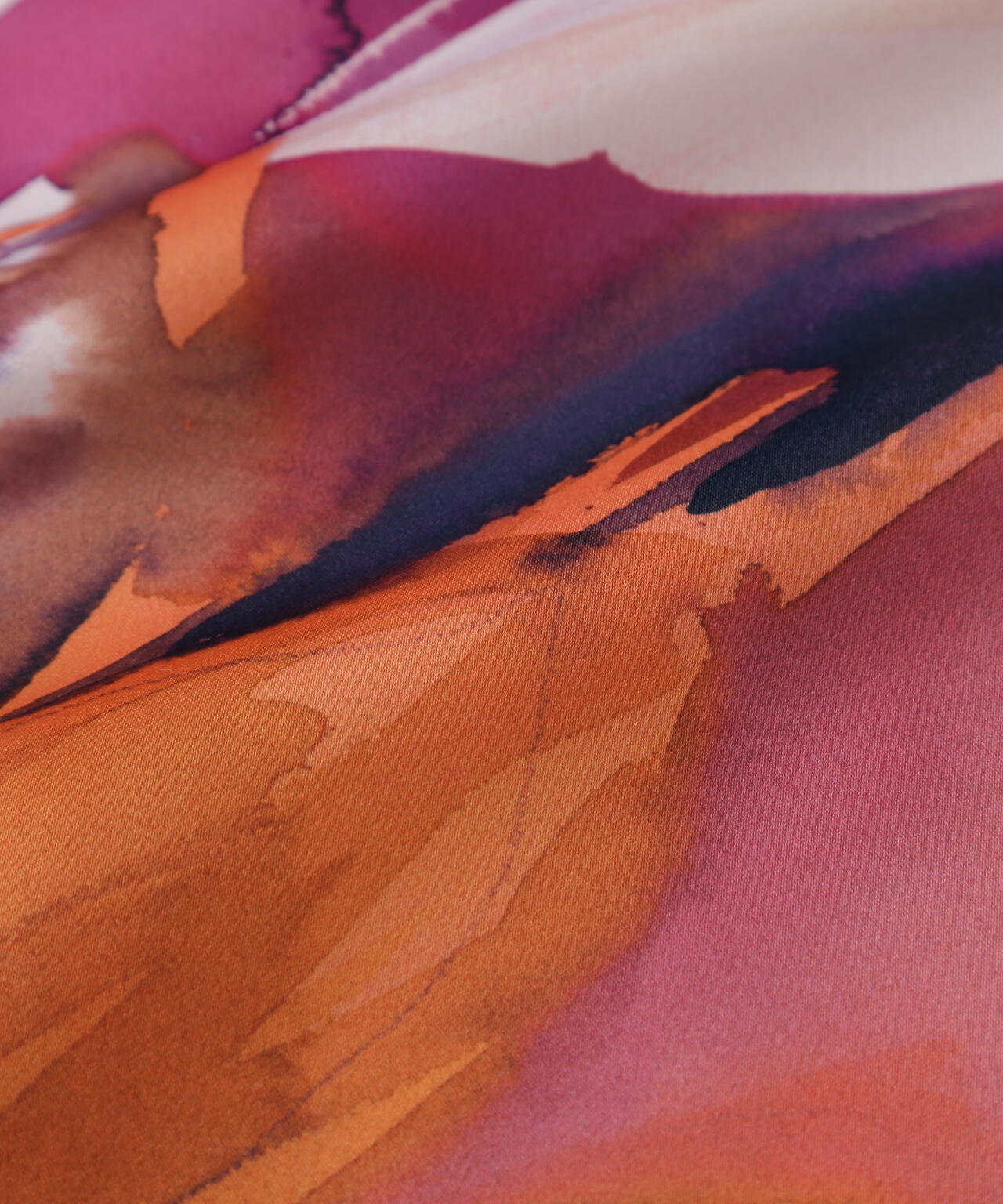北イタリア屈指のリゾート地・コモ湖近郊に拠点を構える〈SILK-CO(シルク・コー)社〉の、アートのように美しいプリント生地を使用した、贅沢な一着。