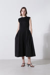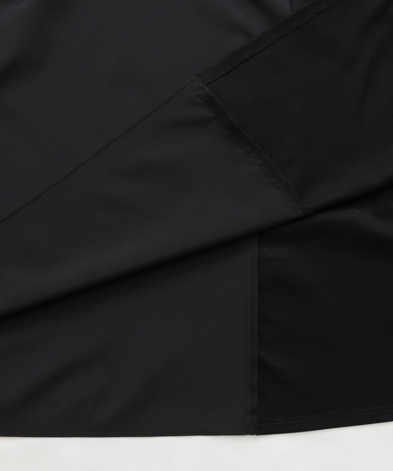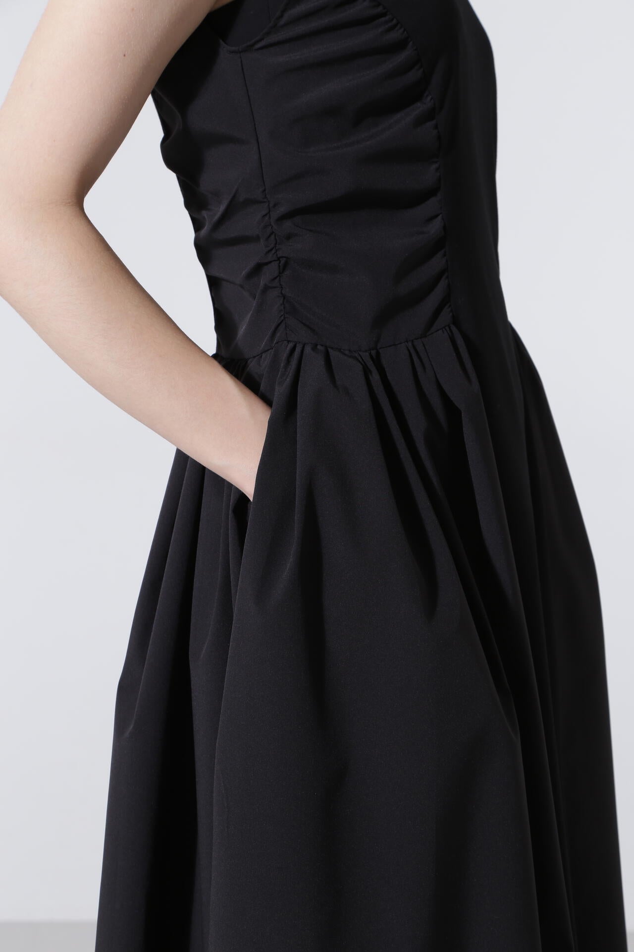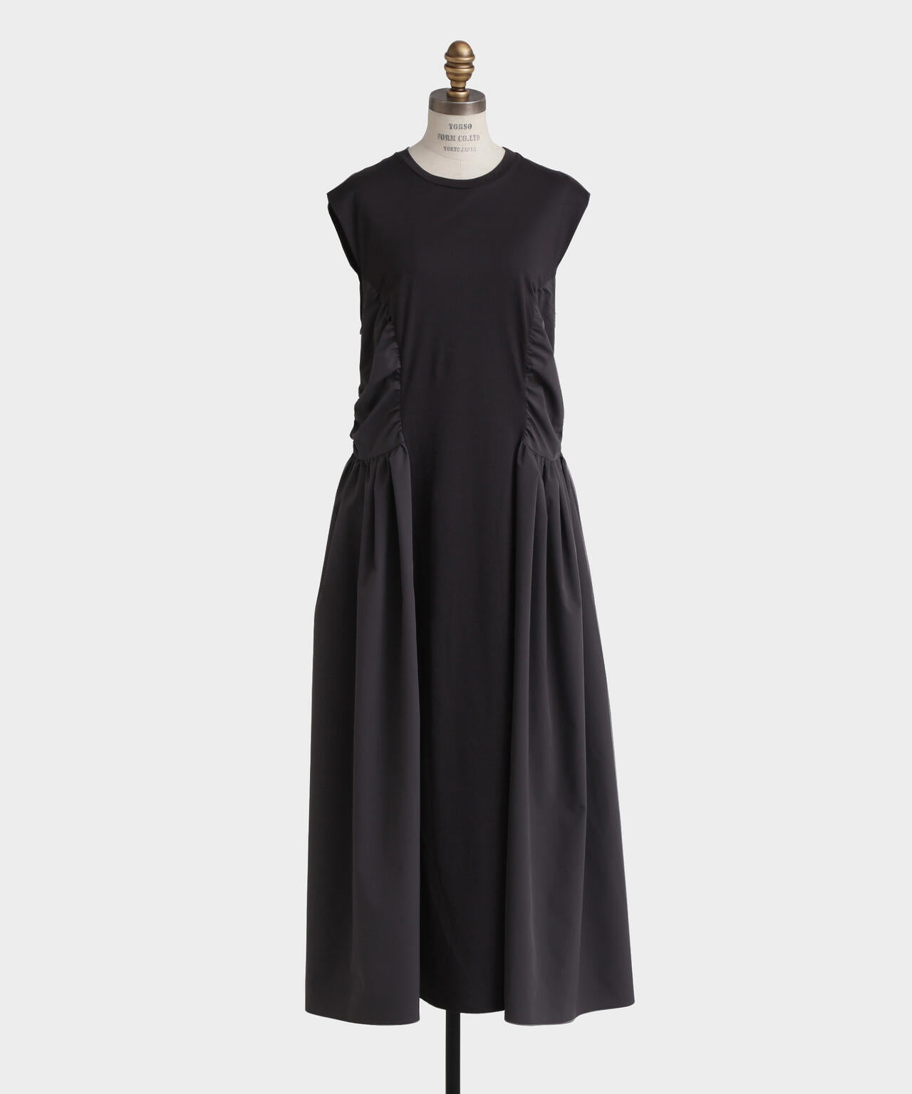 カットソー生地にイージーケアの布帛素材をドッキングした、夏に最適なイージードレッシングのサマードレス。