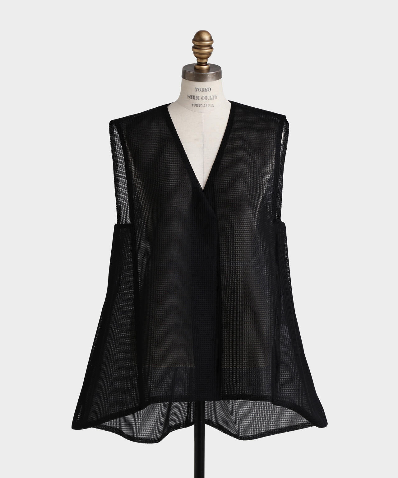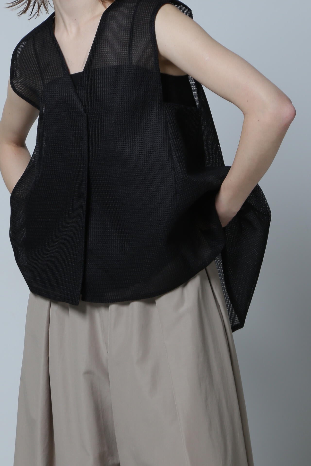適度なハリのある2重織のメッシュがトレンド感たっぷりのサマージレ。