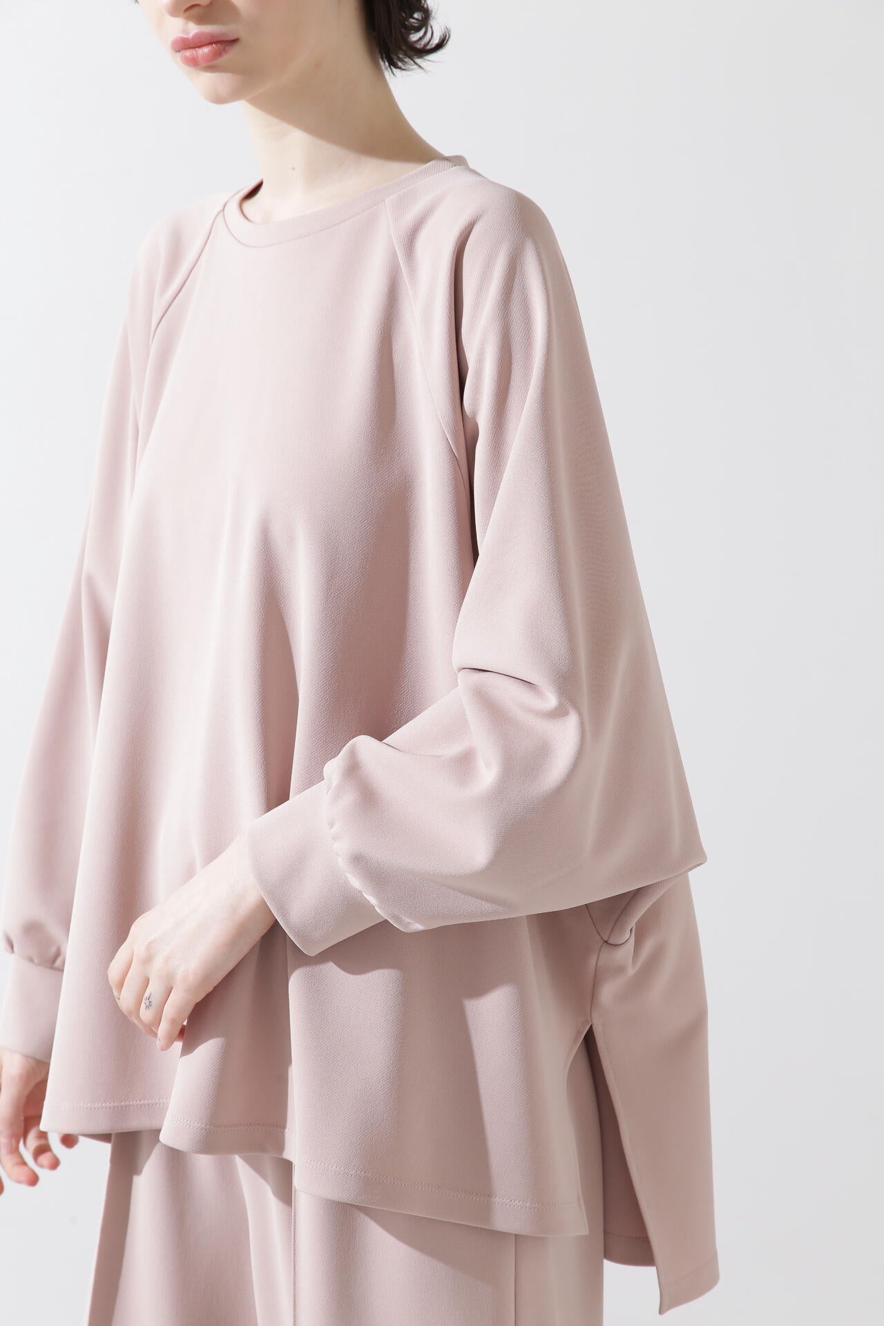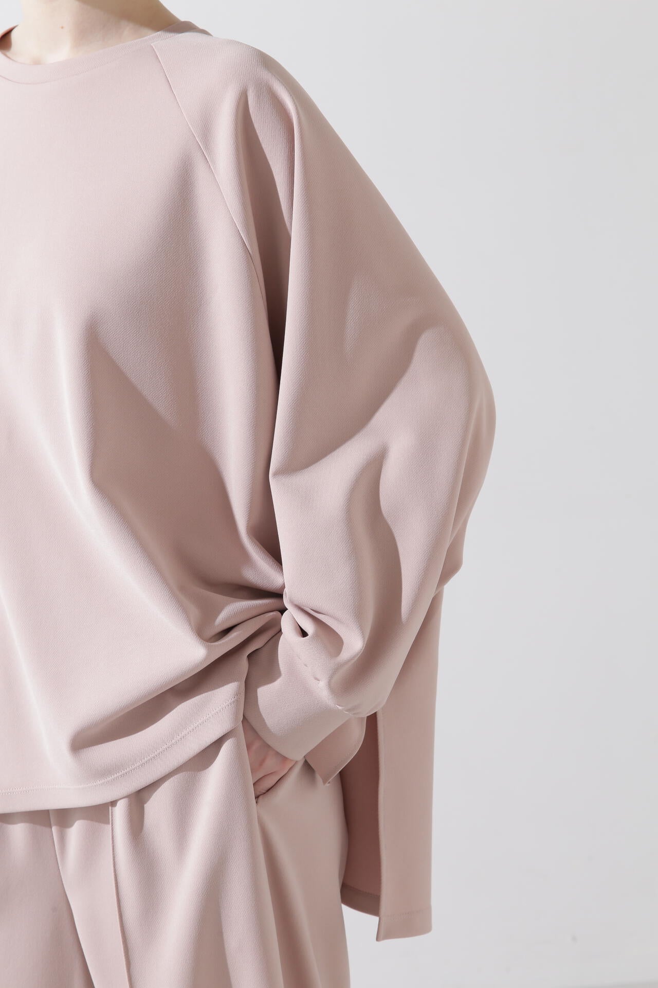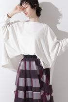 シルクの滑らかさや優れた調湿性を保持しつつ、天然成分でコーティングすることにより耐洗濯性・耐摩擦性の高い、扱いやすい絹糸を使用したニット。ストレッチ糸をシルクと引揃える事で、透けづらく、体のラインをカバーします。シルクならではの光沢感、発色の良さをお楽しみください。