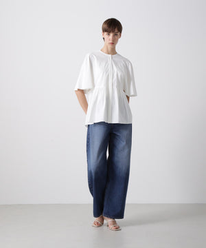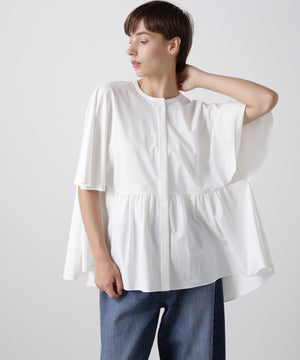 身頃と袖が一体になったポンチョのようなフォルムが特徴のサマーブラウス。風をはらむようなリラックスしたシルエットが、1枚で華やかさと印象的なスタイルを叶えます。さらりとしたドライな肌触りとナチュラルな風合いが魅力の素材を使用し、どんなボトムスにも合わせやすい万能デザイン。着心地の良さと洗練されたムードを兼ね備えた一着です。
