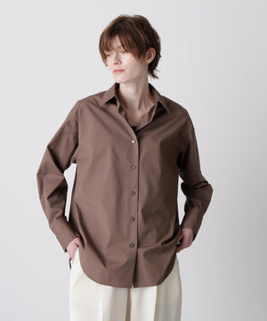 美しい仕立てが際立つベーシックシャツ。国内のシャツ専門工場で丁寧に縫製され、襟元やカフスといった細部にまで繊細なこだわりが光ります。程よくゆとりを持たせたミドルフィットのシルエットは、ジャケットやニットとの重ね着はもちろん、羽織りとしても活躍。素材にはシワになりにくいTCタイプライターを採用し、着心地とお手入れのしやすさも両立しています。